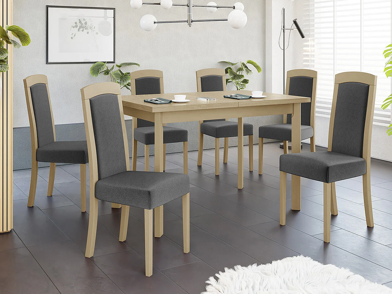 Silla Victorville 345, Gris oscuro|Roble Sonoma, 96x45x41cm, Tapiz, De madera, Madera