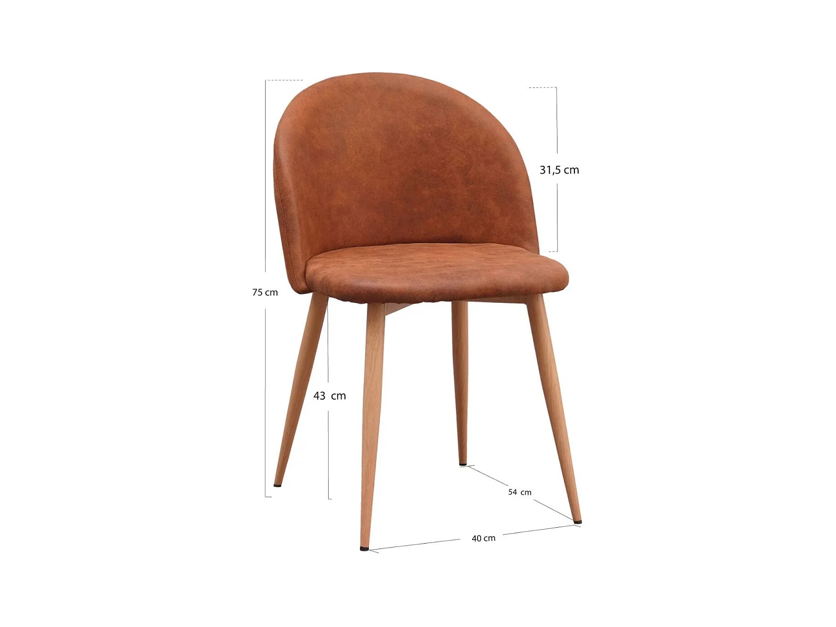 Juego de 2 sillas Kazon - Elegante piel sintética y patas de metal efecto madera clara-Color Marrón