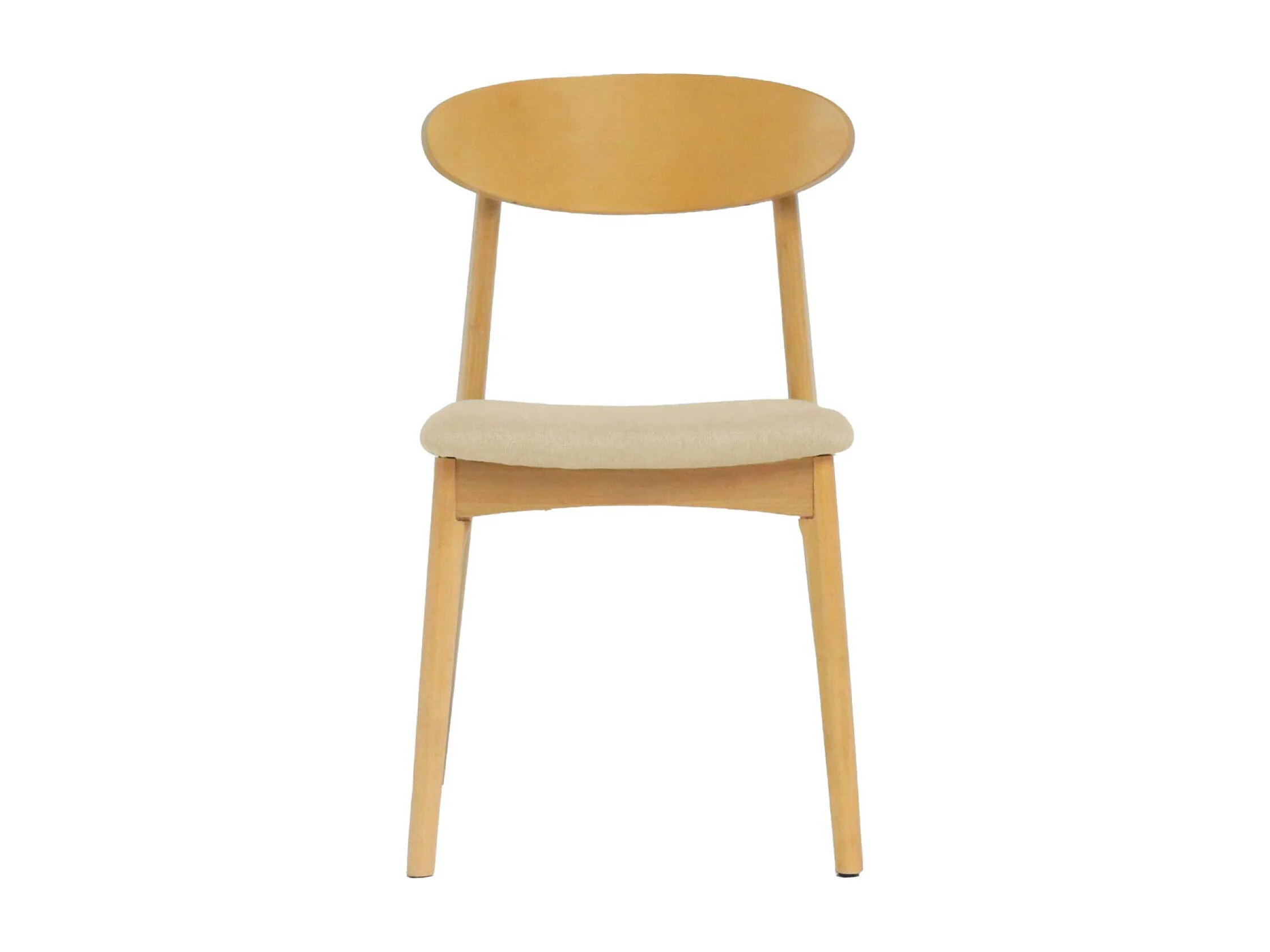 Silla vintage de madera de hevea natural y tela (lote de 2) beige