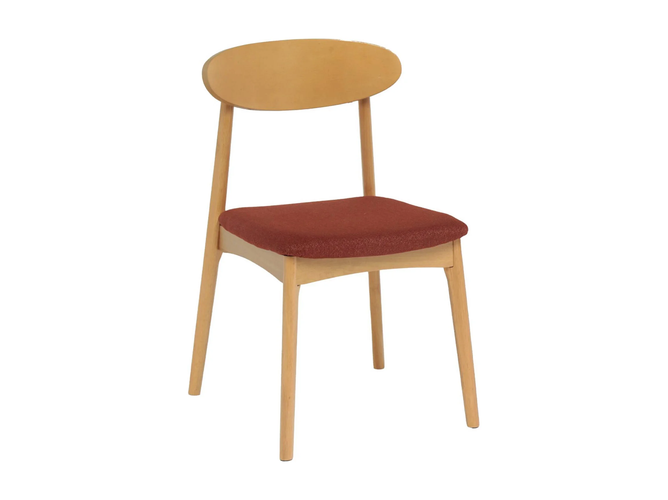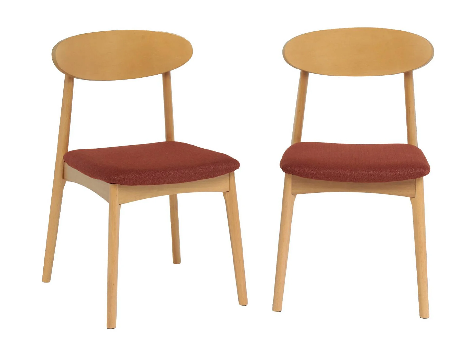 Silla vintage de madera de hevea natural y tela (lote de 2) terracota