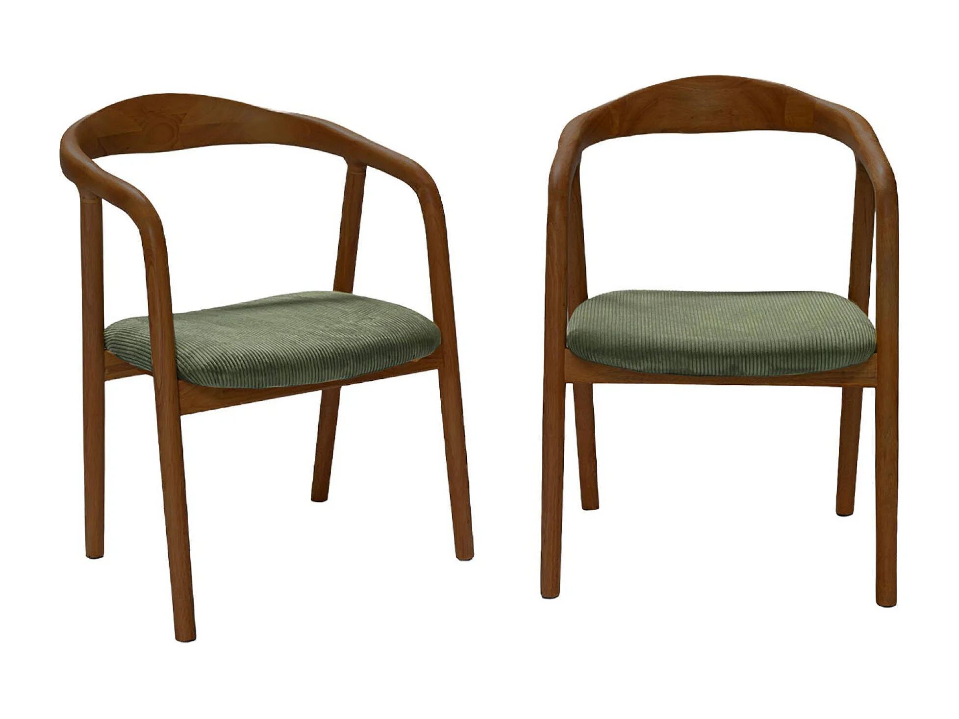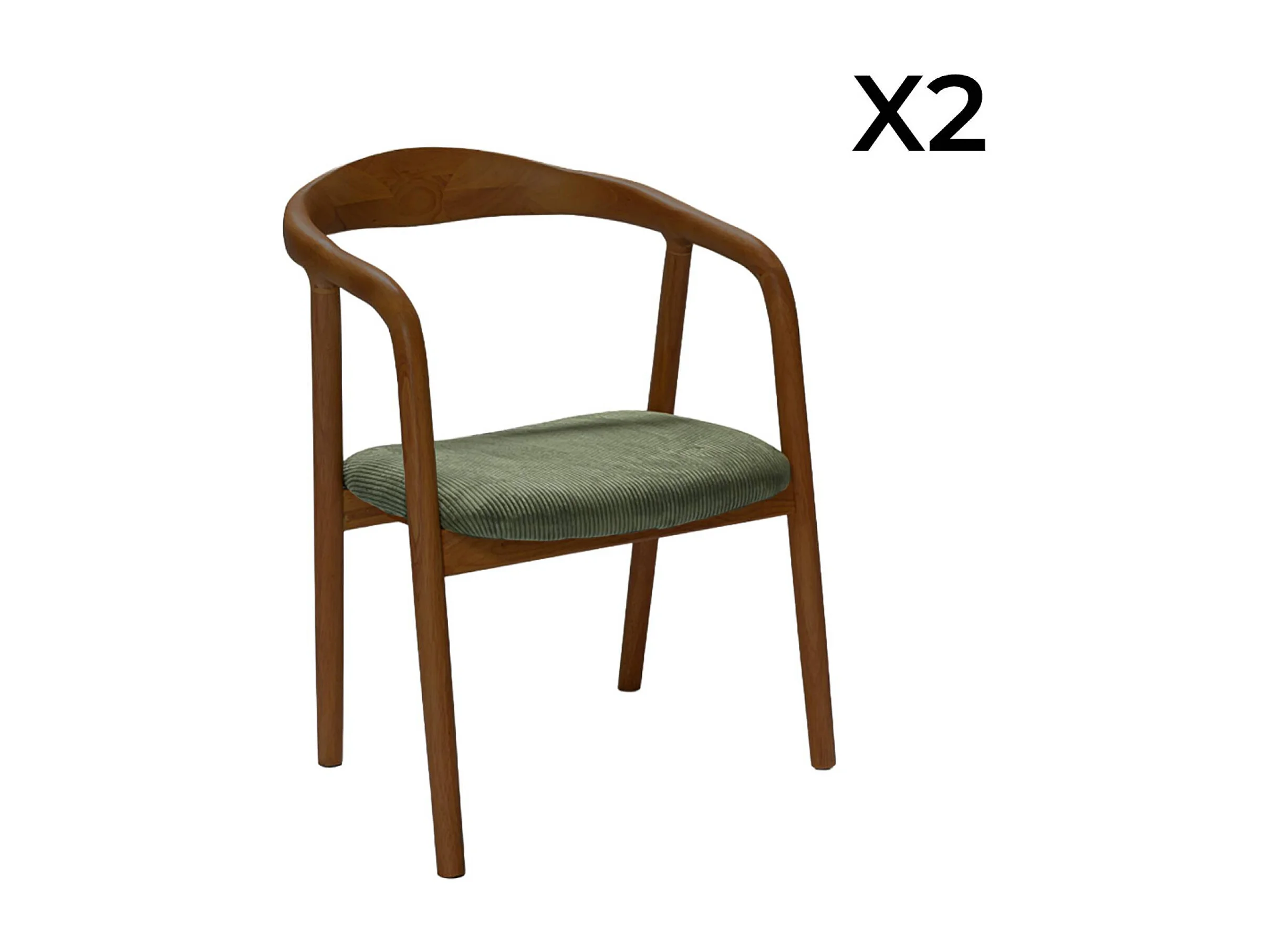 Silla vintage de madera de hevea nogal y pana, set de 2 nogal