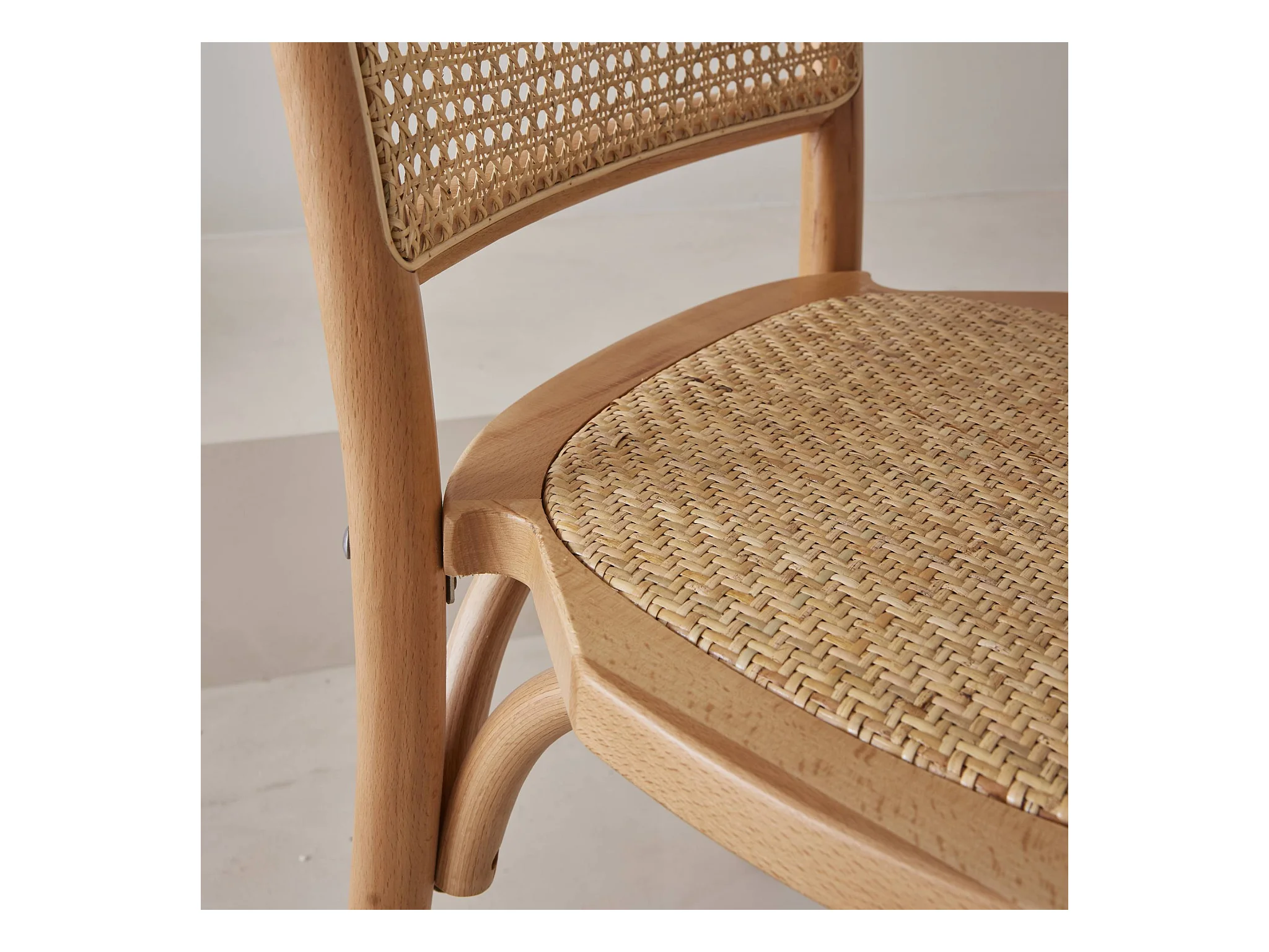 Pack de 2 sillas de 89x48x52 cm de madera maciza y asiento de ratán en color beige Piper