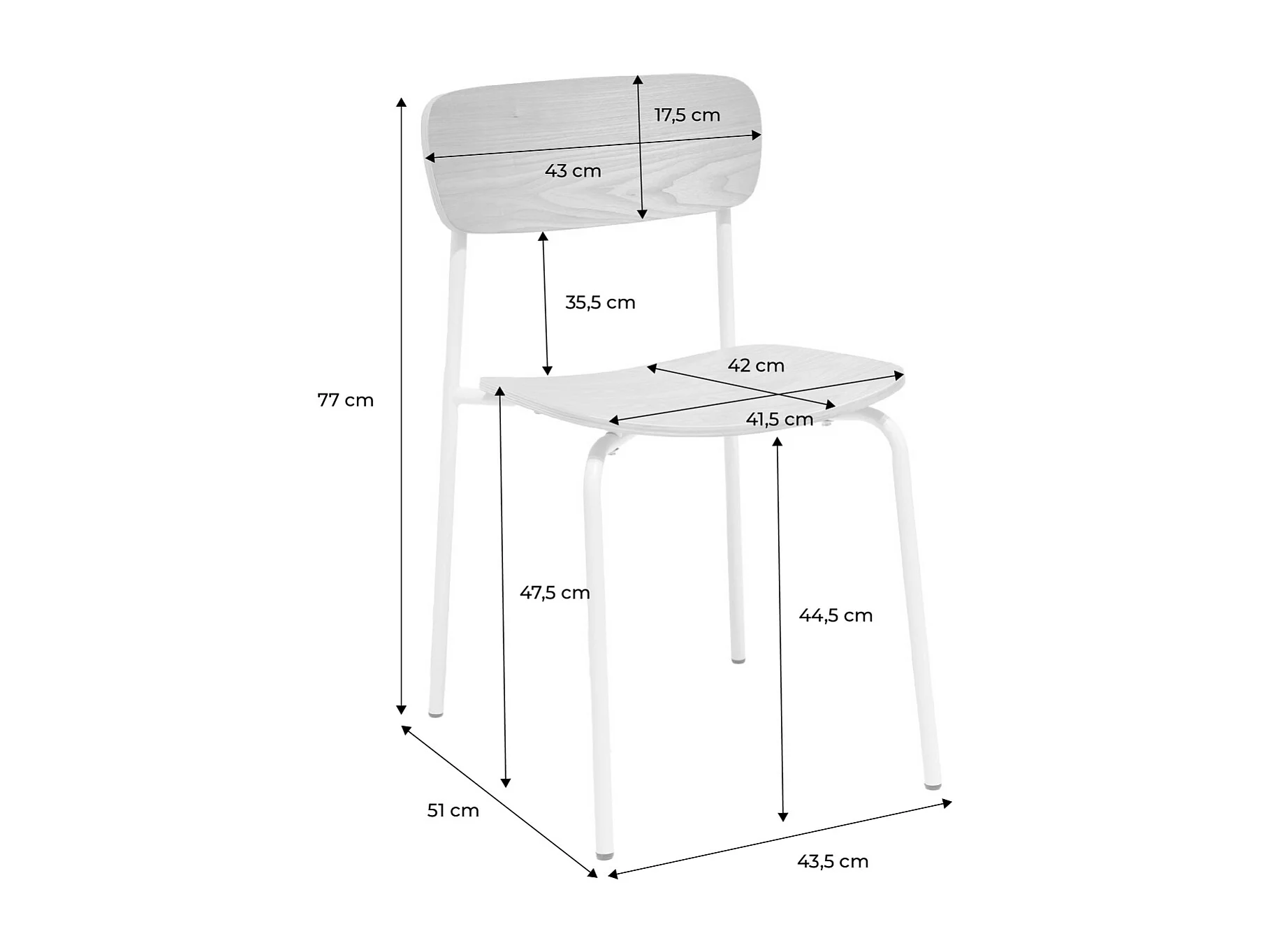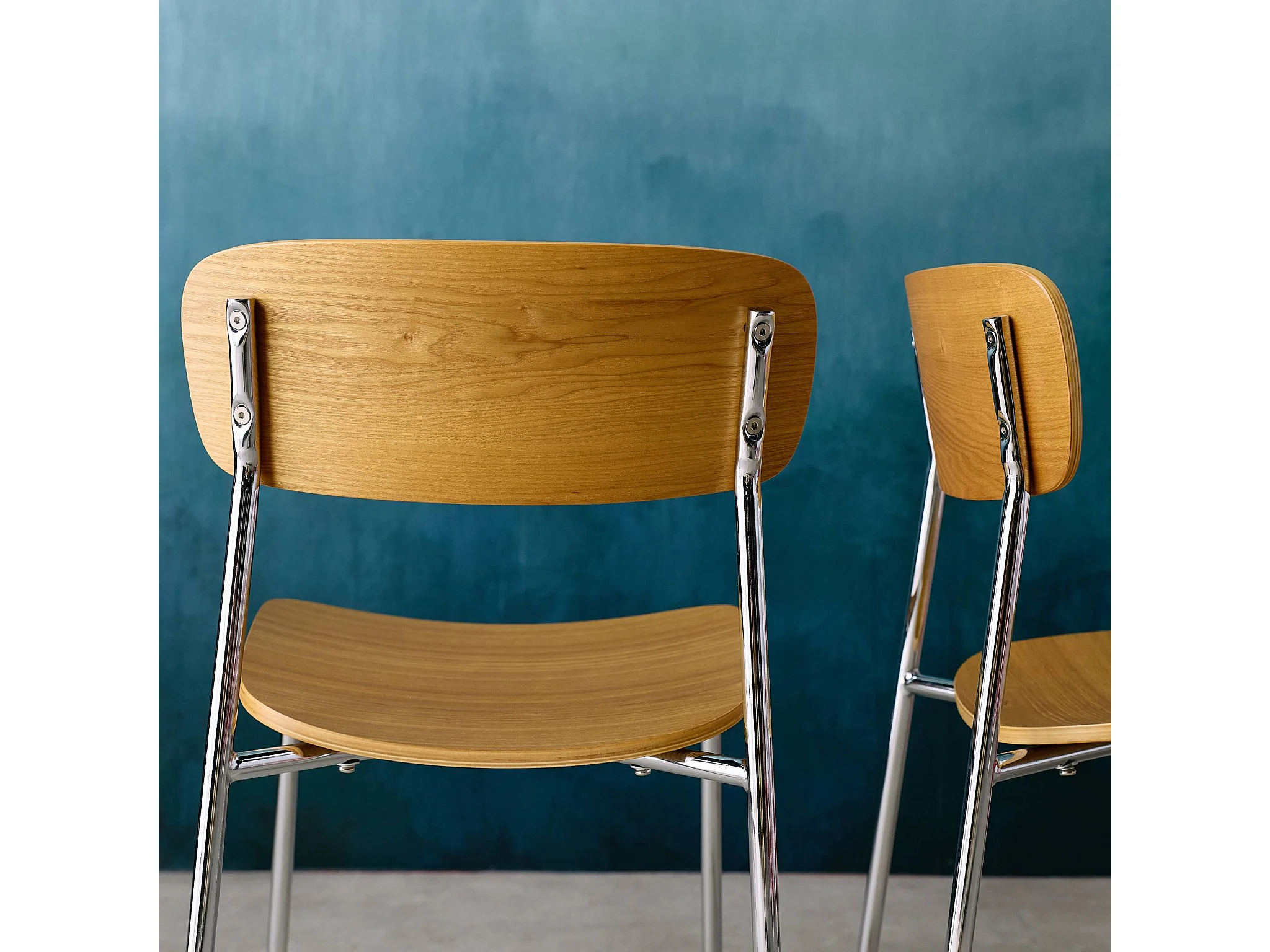 Silla vintage de metal y contrachapado, set de 2 gris perlado