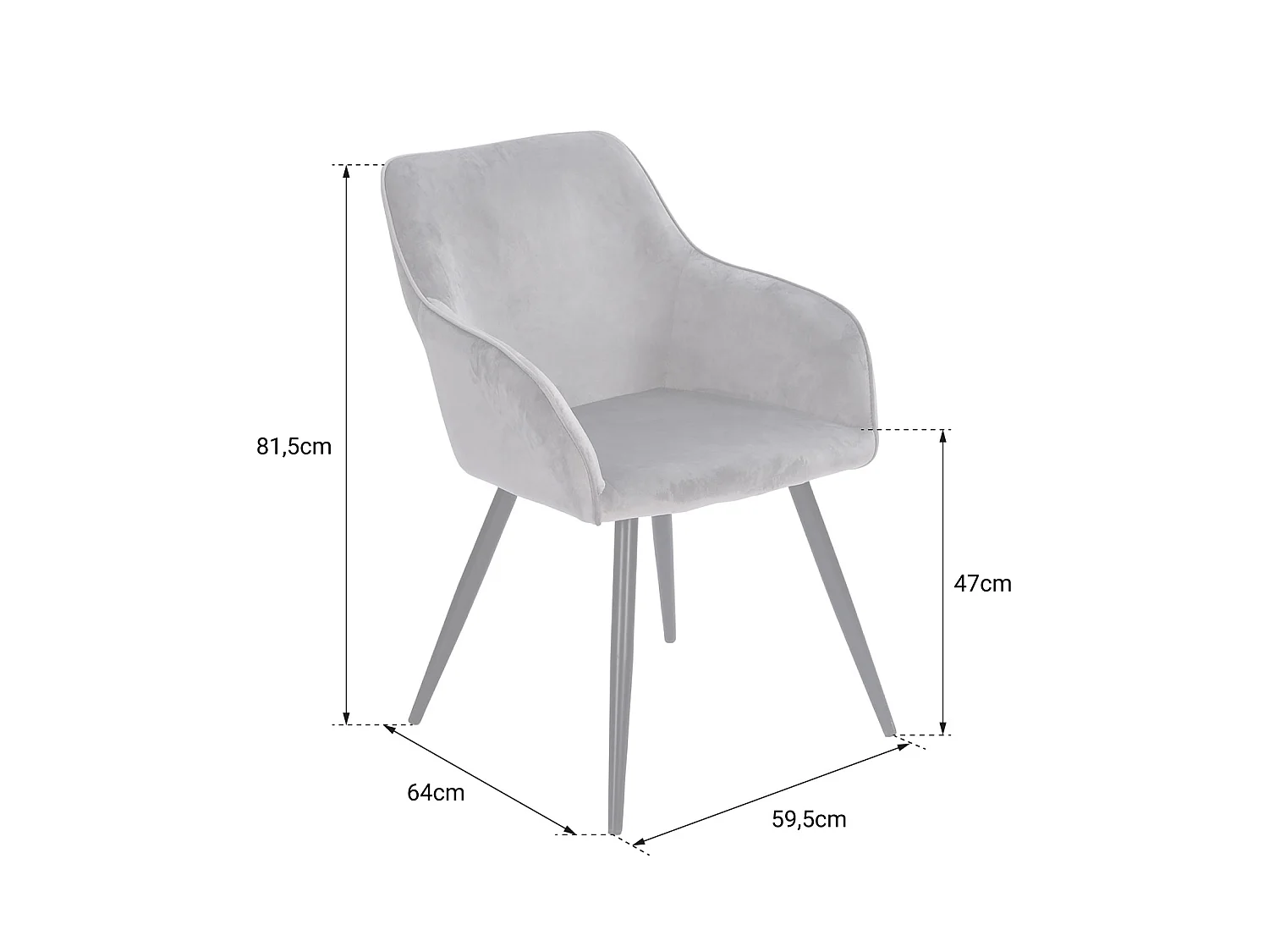 Silla de comedor individual de terciopelo con patas de metal, gris (59,69x59,69x55,88 cm)