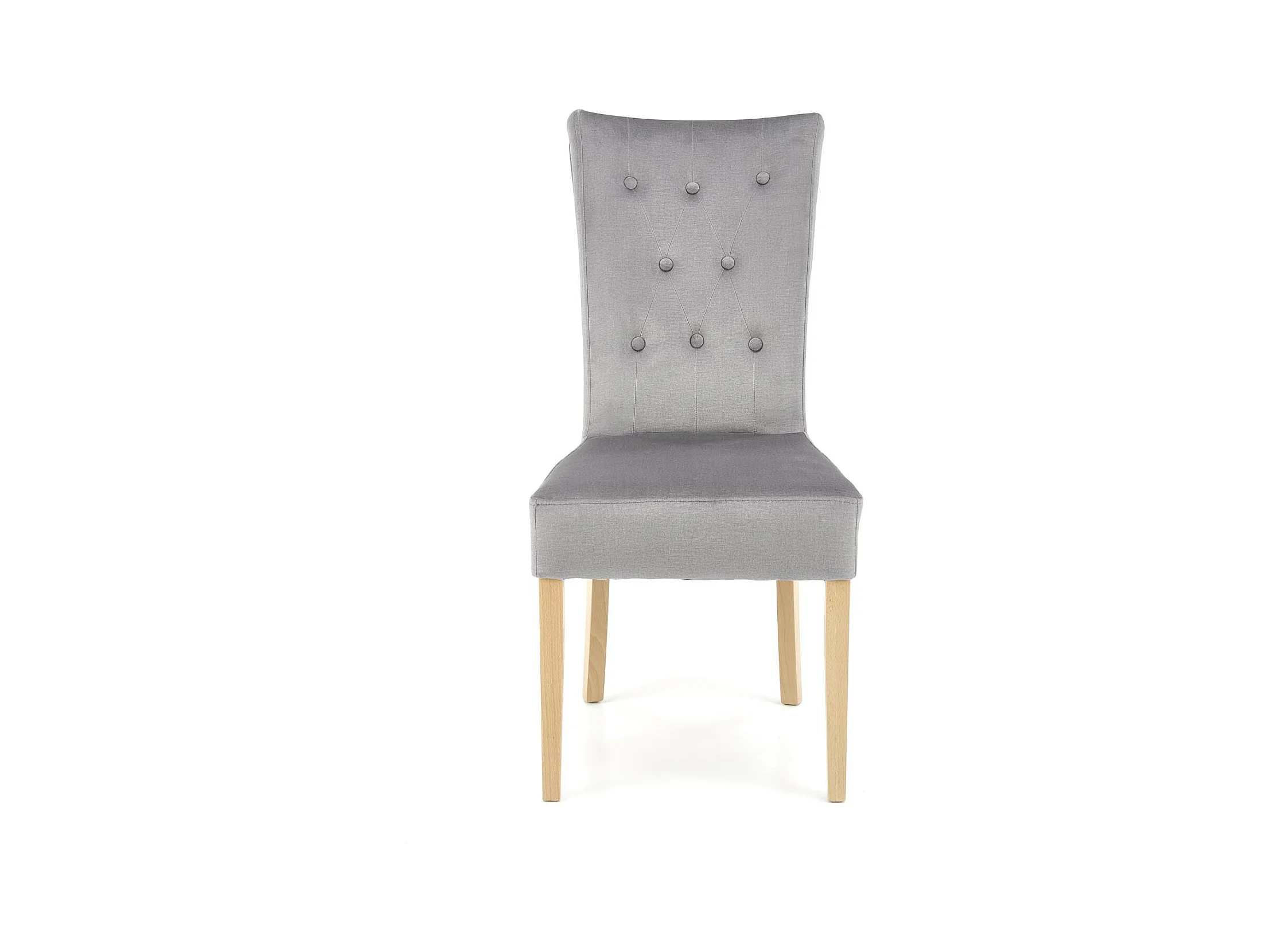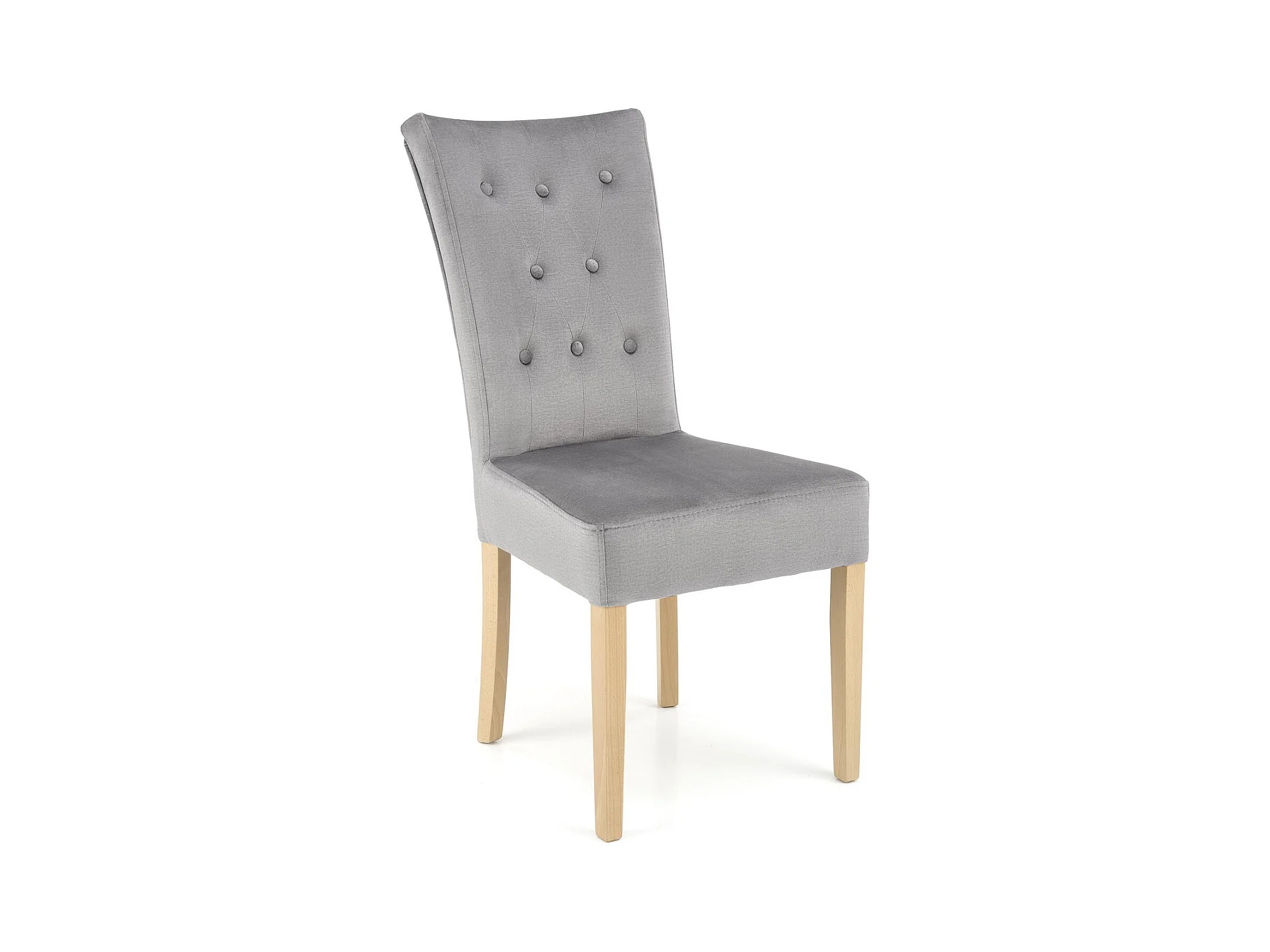 Silla Yanis tapizada en terciopelo gris con patas de madera maciza