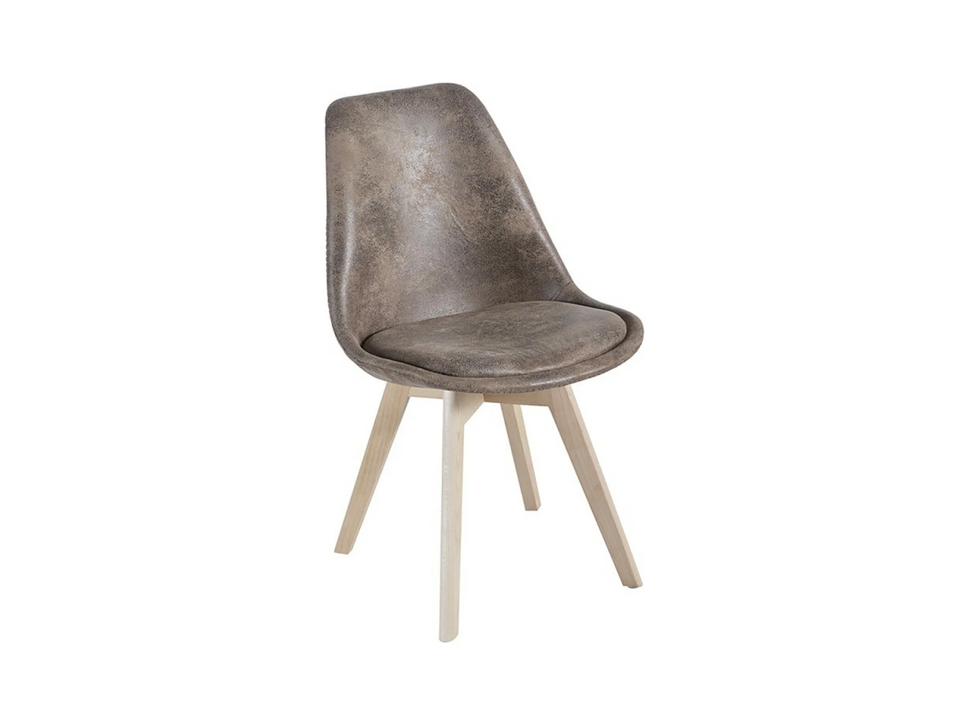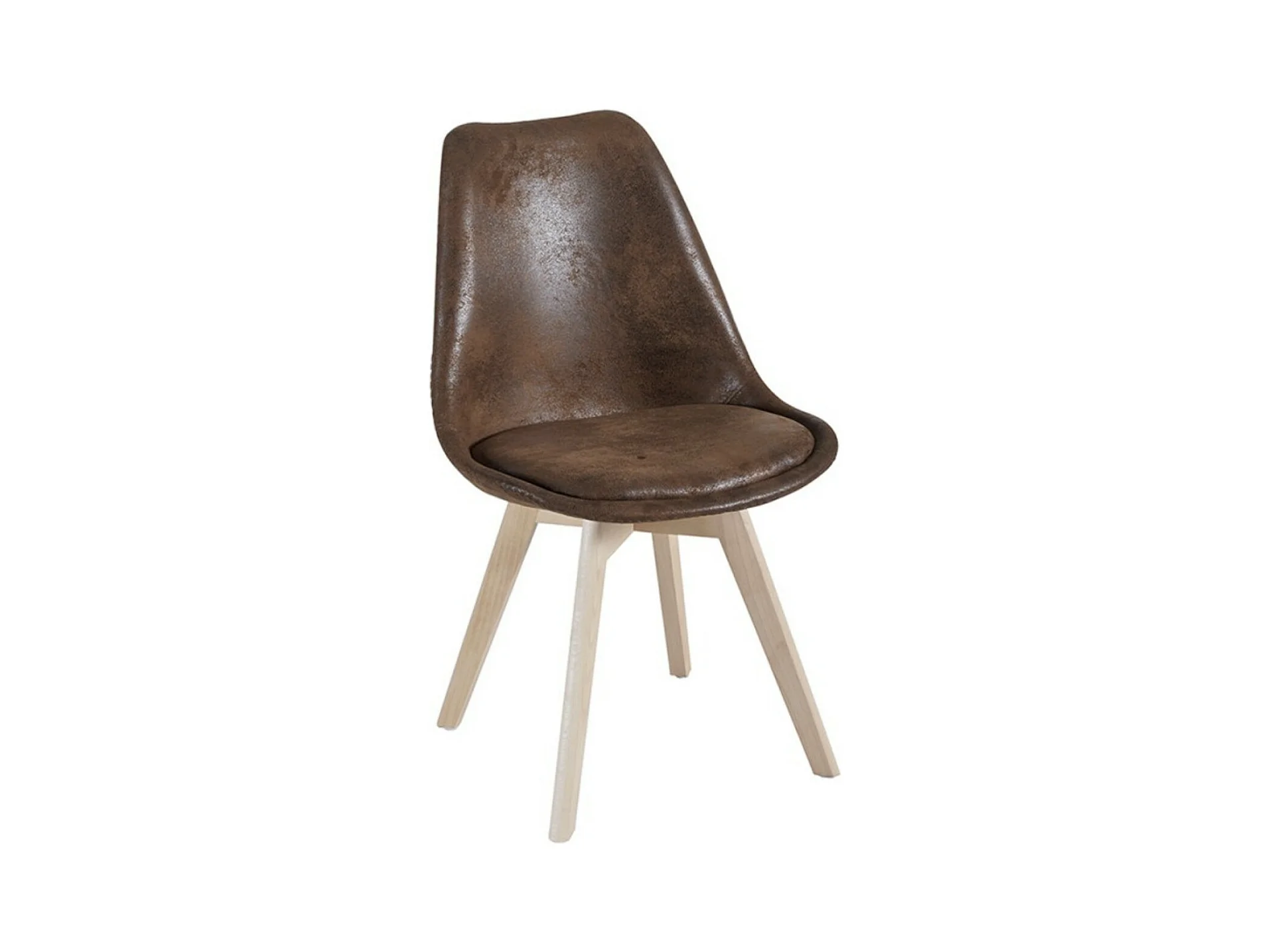 Silla Zaka con asiento vintage símil piel y patas de madera natural-Color Negro