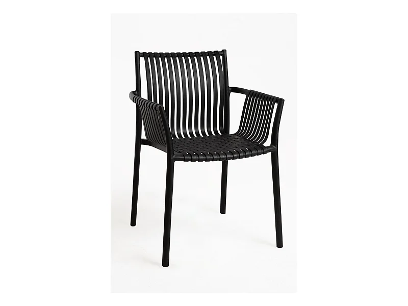 Sillón GRID de madera de fresno y ratán: un diseño aireado-Color Negro