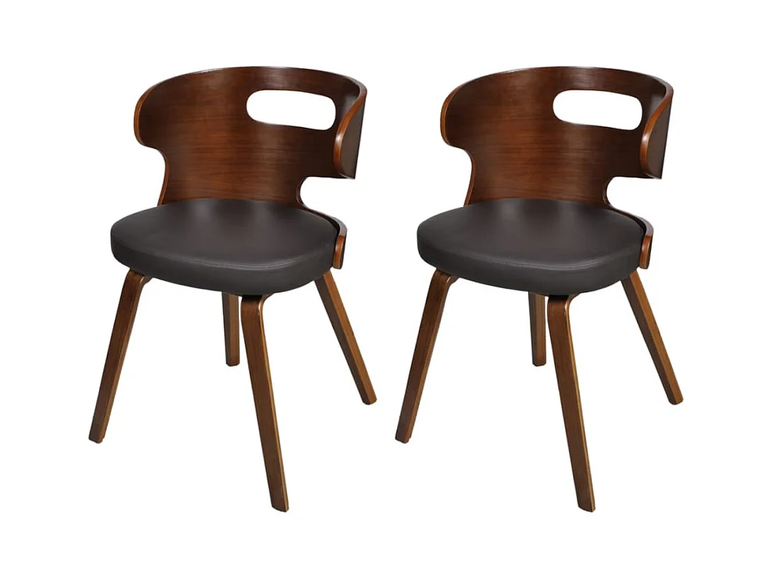Sillas de comedor 4 uds madera curvada piel sintética marrón