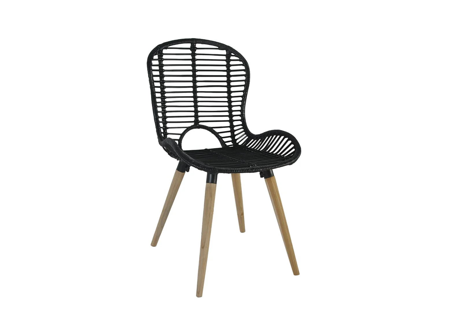 Set de 2 sillas negras de ratán, tela y metal PEACOCK