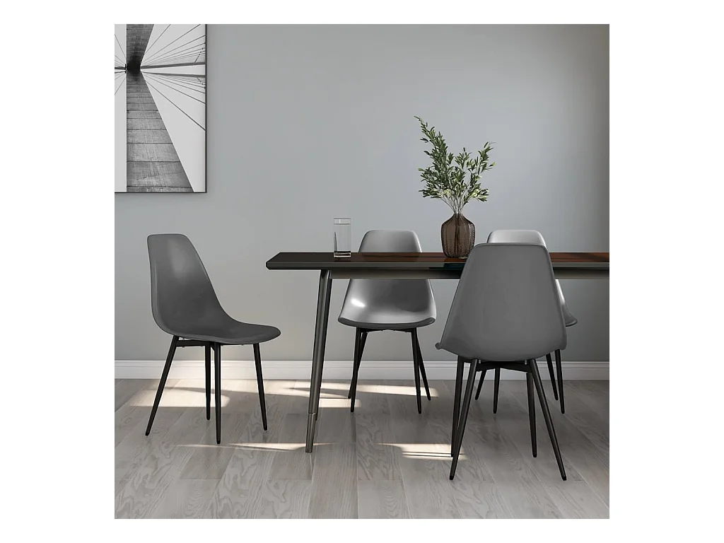 Juego de 2 sillas de comedor en plástico gris con patas en metal gris