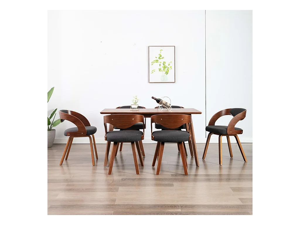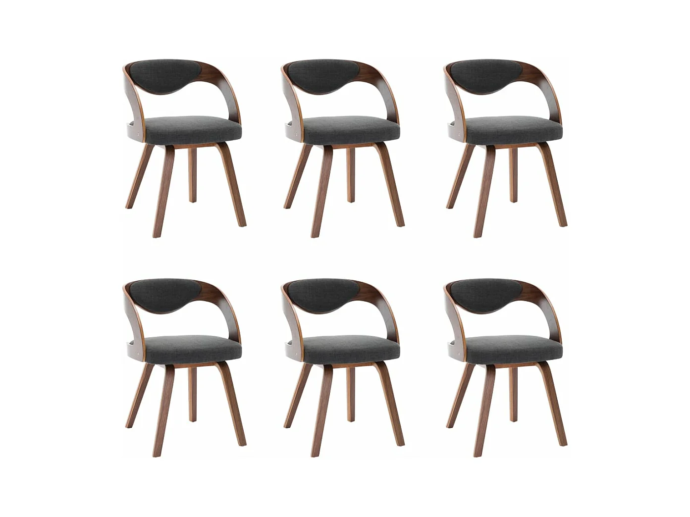 Sillas de comedor 6 unidades madera curvada y tela gris oscuro