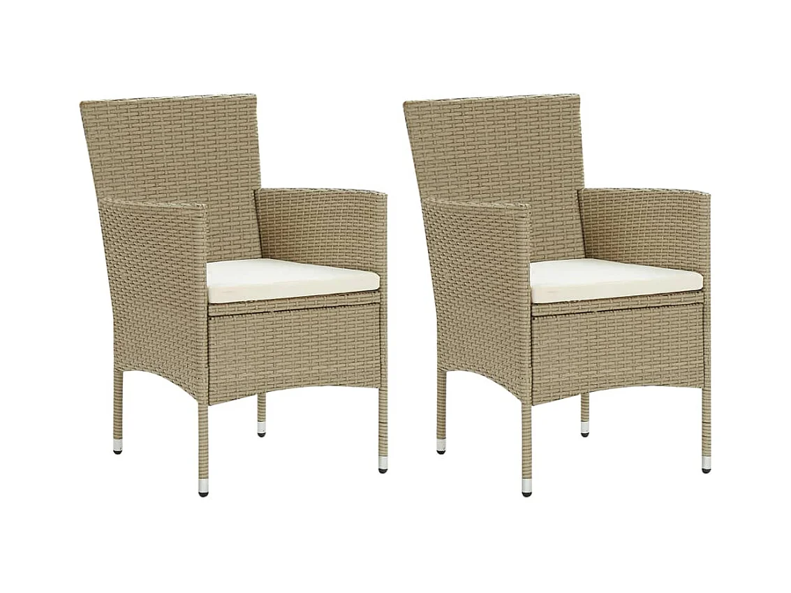 Juego de 2 sillas de jardín con cojines de resina trenzada beige