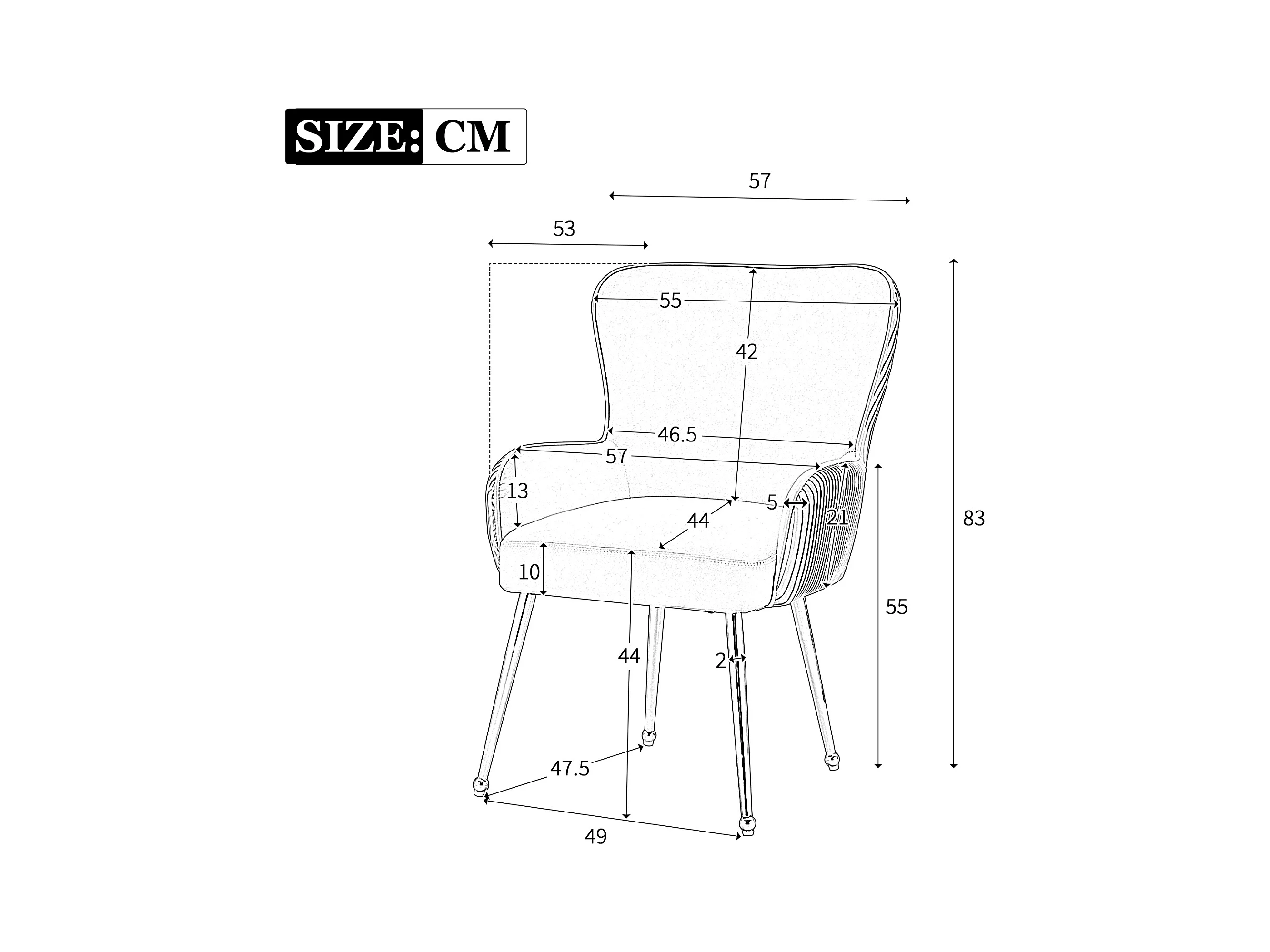 Silla de comedor de terciopelo beige con clavos decorativos y patas de madera maciza (55x61x91 cm)