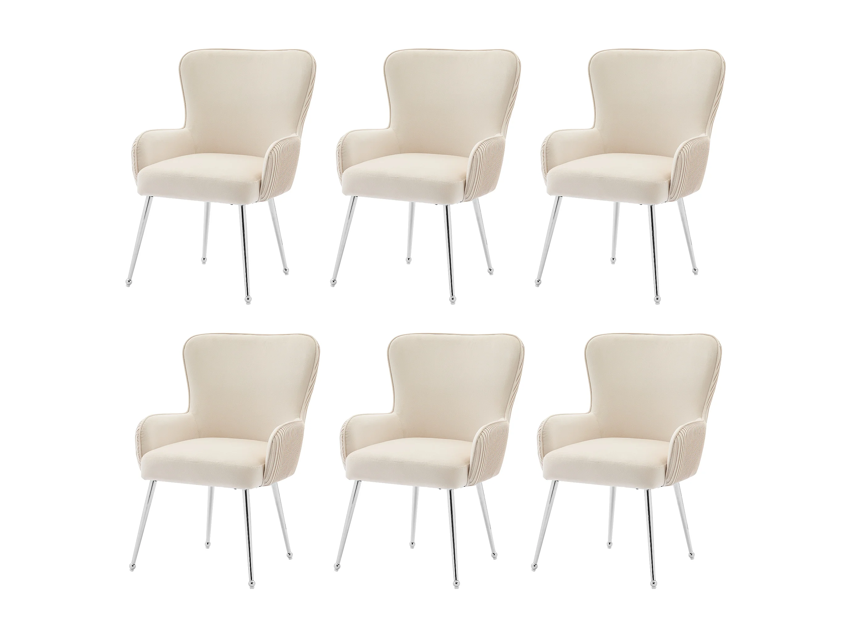 Silla de terciopelo beige con patas de metal plateado, cómoda silla de salón, moderna sala de estar dormitorio, juego de 6