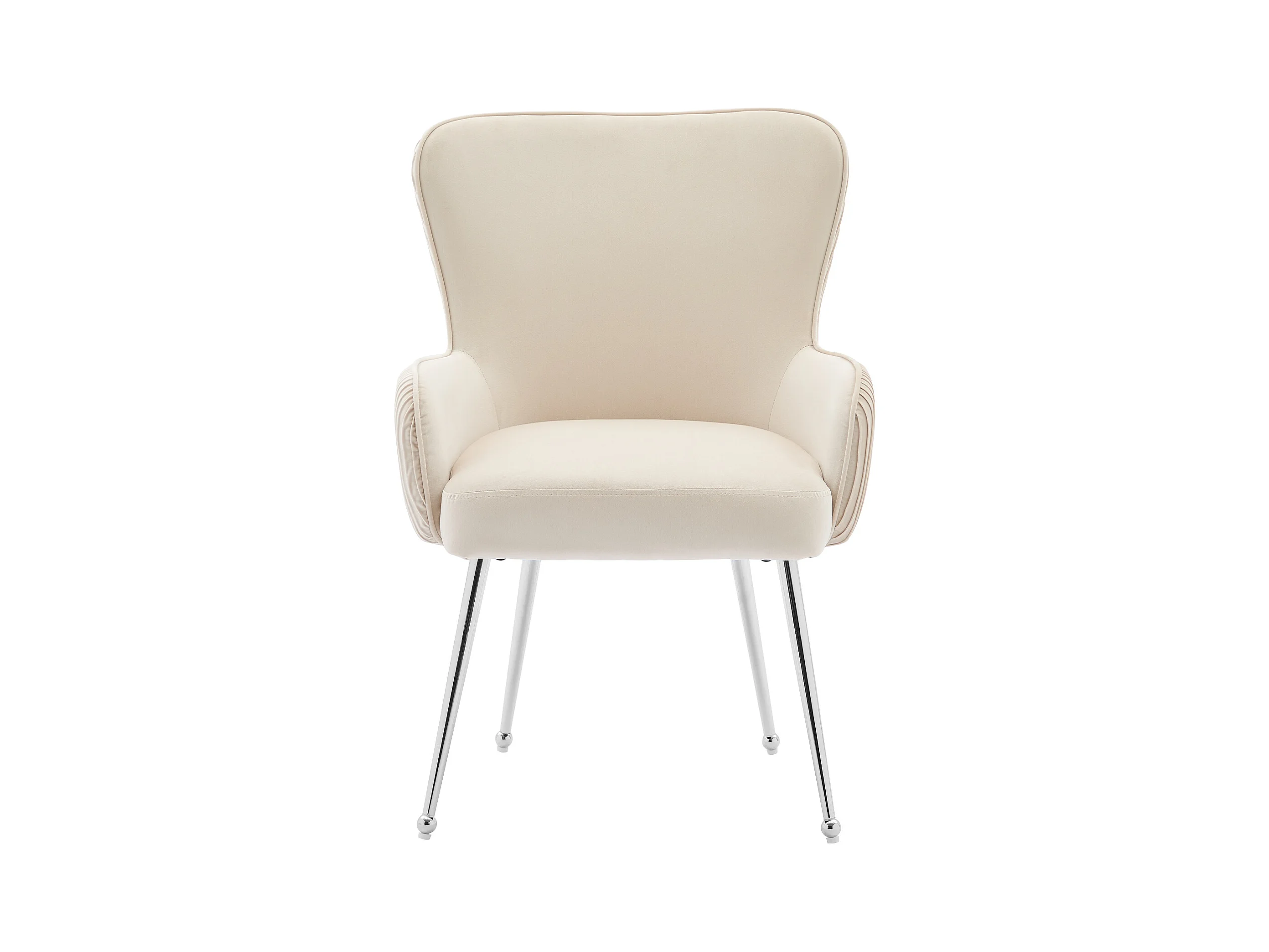 Silla de terciopelo beige de lujo con reposabrazos y patas ajustables de metal plateado para sala de estar, dormitorio, salón, juego de 6