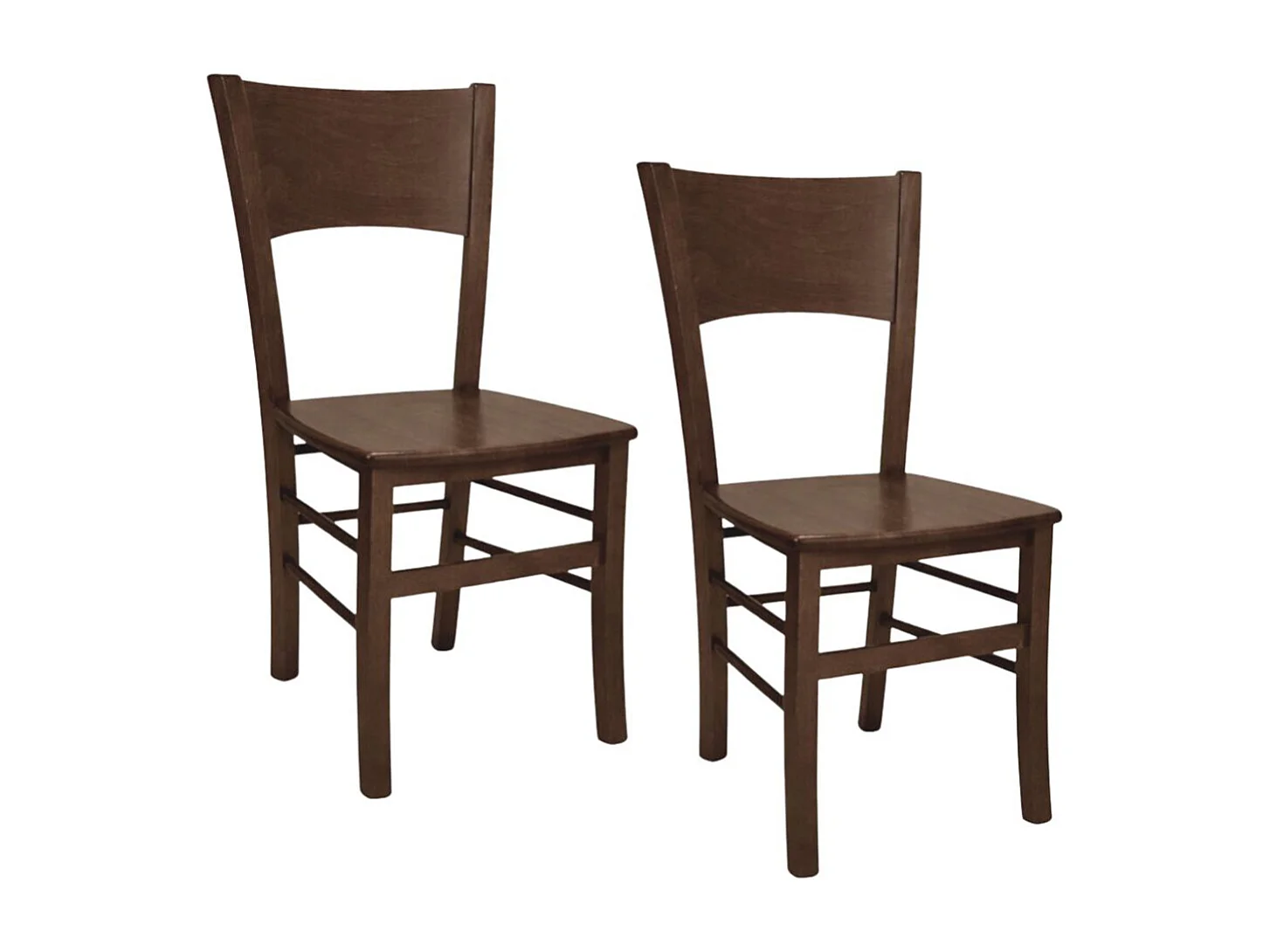 Sillas de comedor Lucy, juego de 2, en madera de nogal oscuro con asiento de madera maciza.