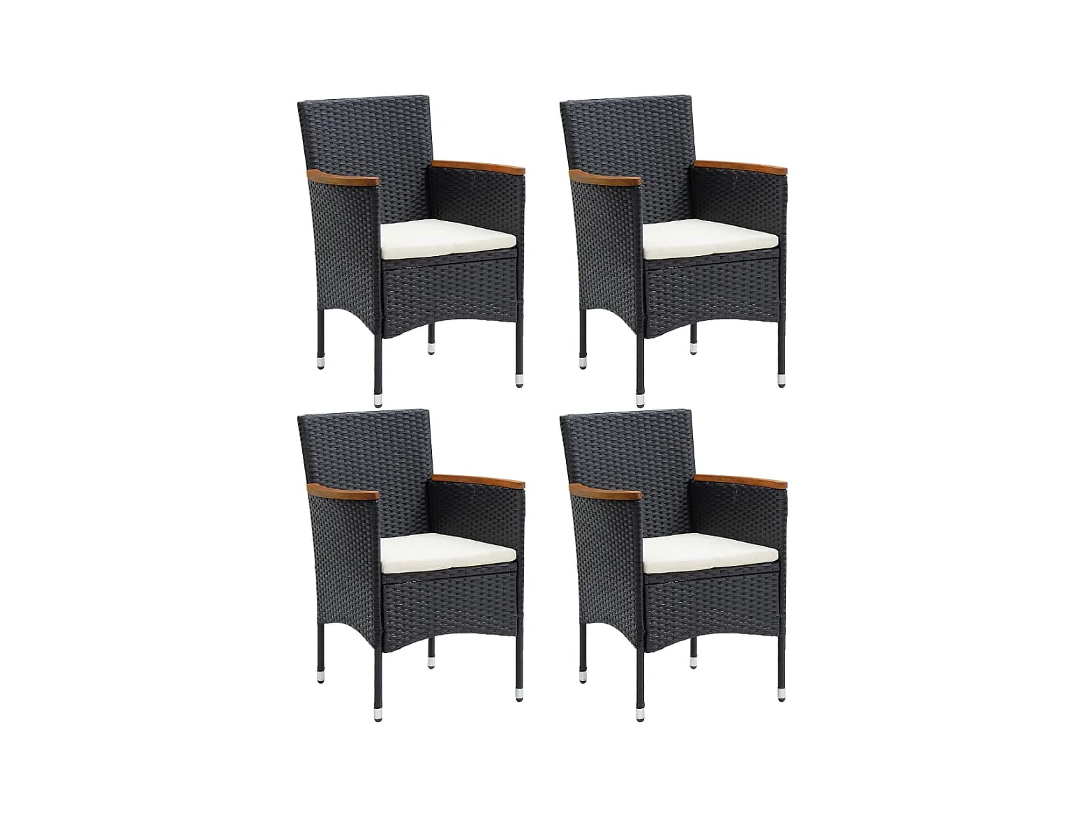 Sillas jardín y cojines 4 uds ratán sintético negro 56x59x84 cm ES65455