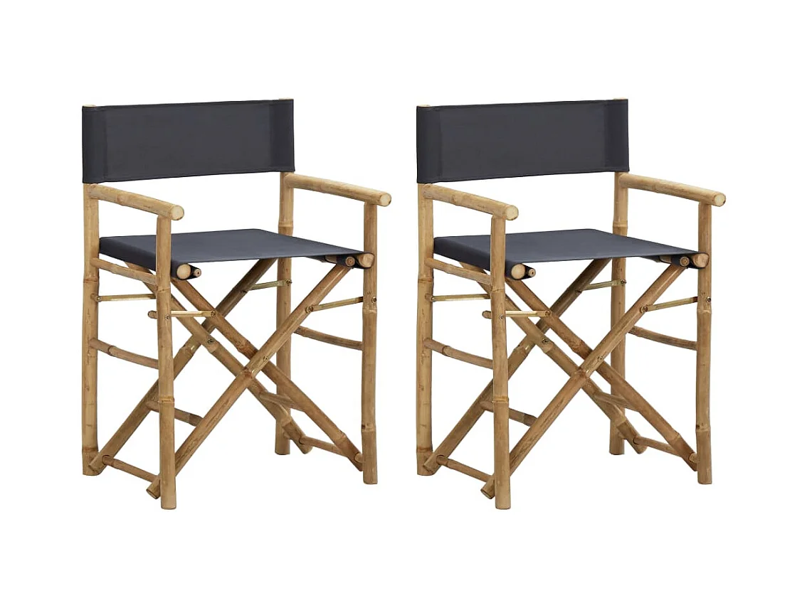 Sillas de director plegables 2 piezas bambú y tela gris oscura ES11850