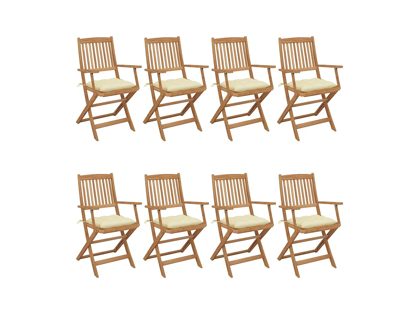 Sillas de jardín plegables 8 unidades y cojines madera maciza acacia