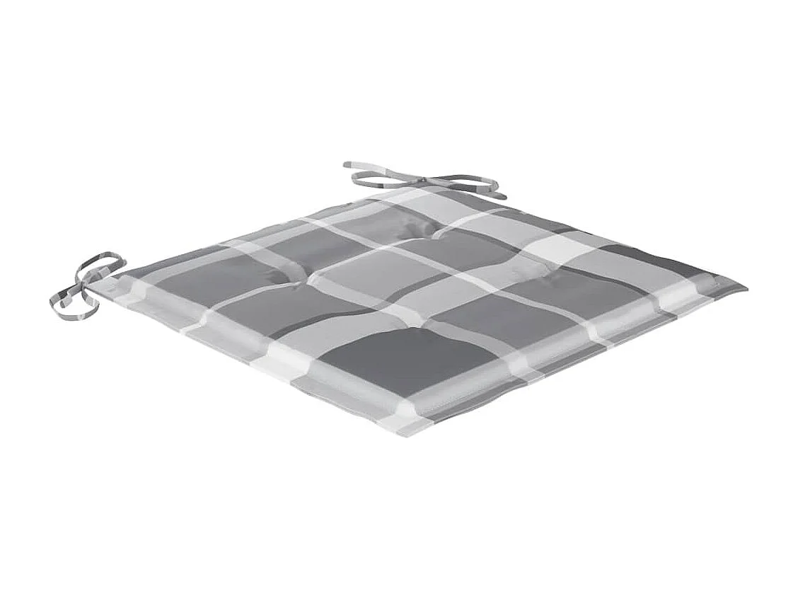 Sillas de jardín 2 piezas con cojines a cuadros gris teca