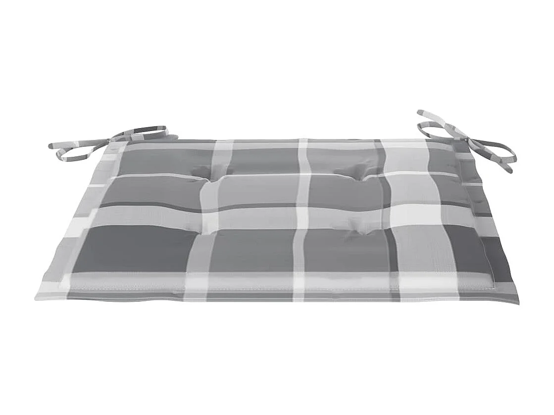 Sillas de jardín 2 unidades madera teca con cojines a cuadros gris