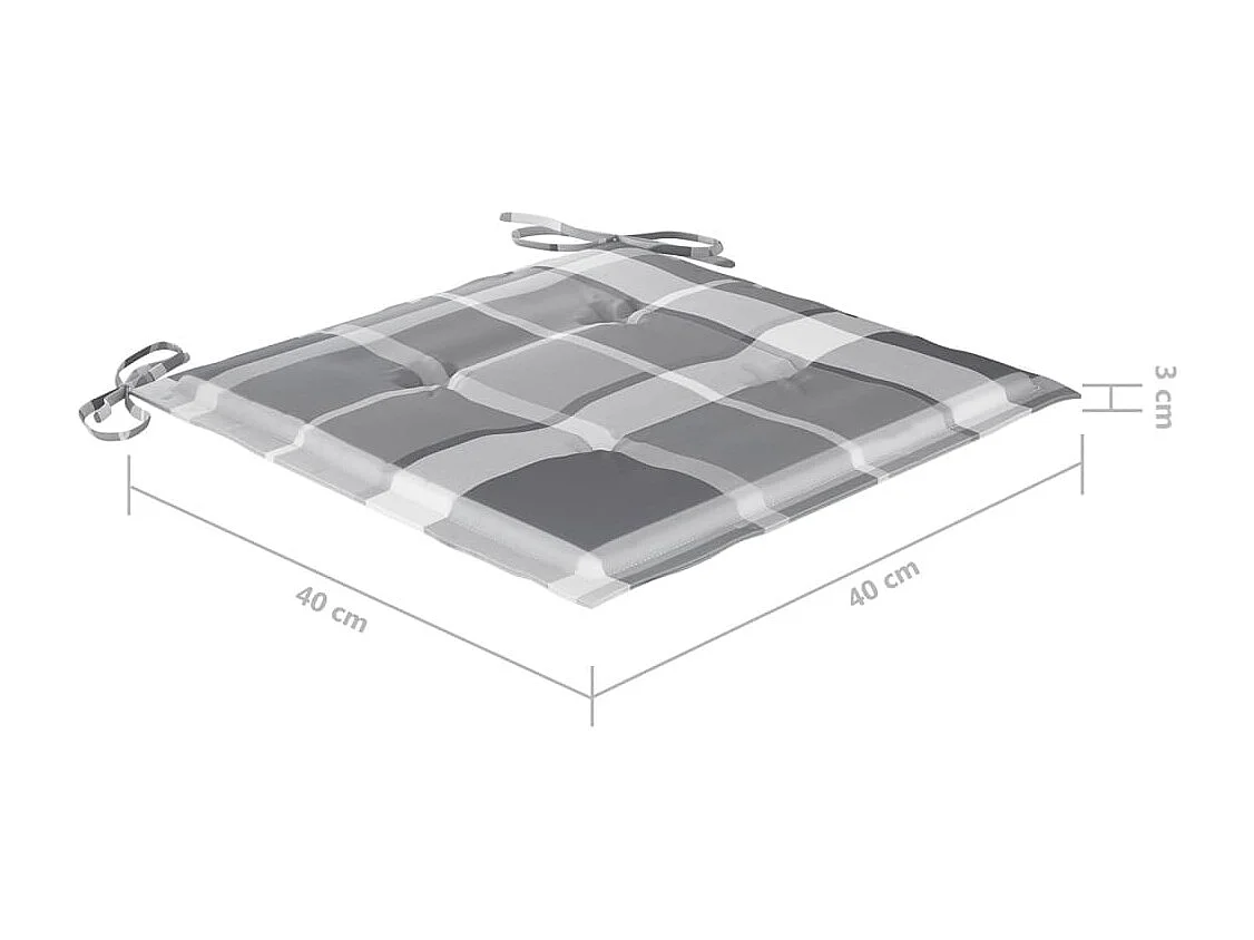 Juego de 2 sillas de jardín y cojines a cuadros gris teca.