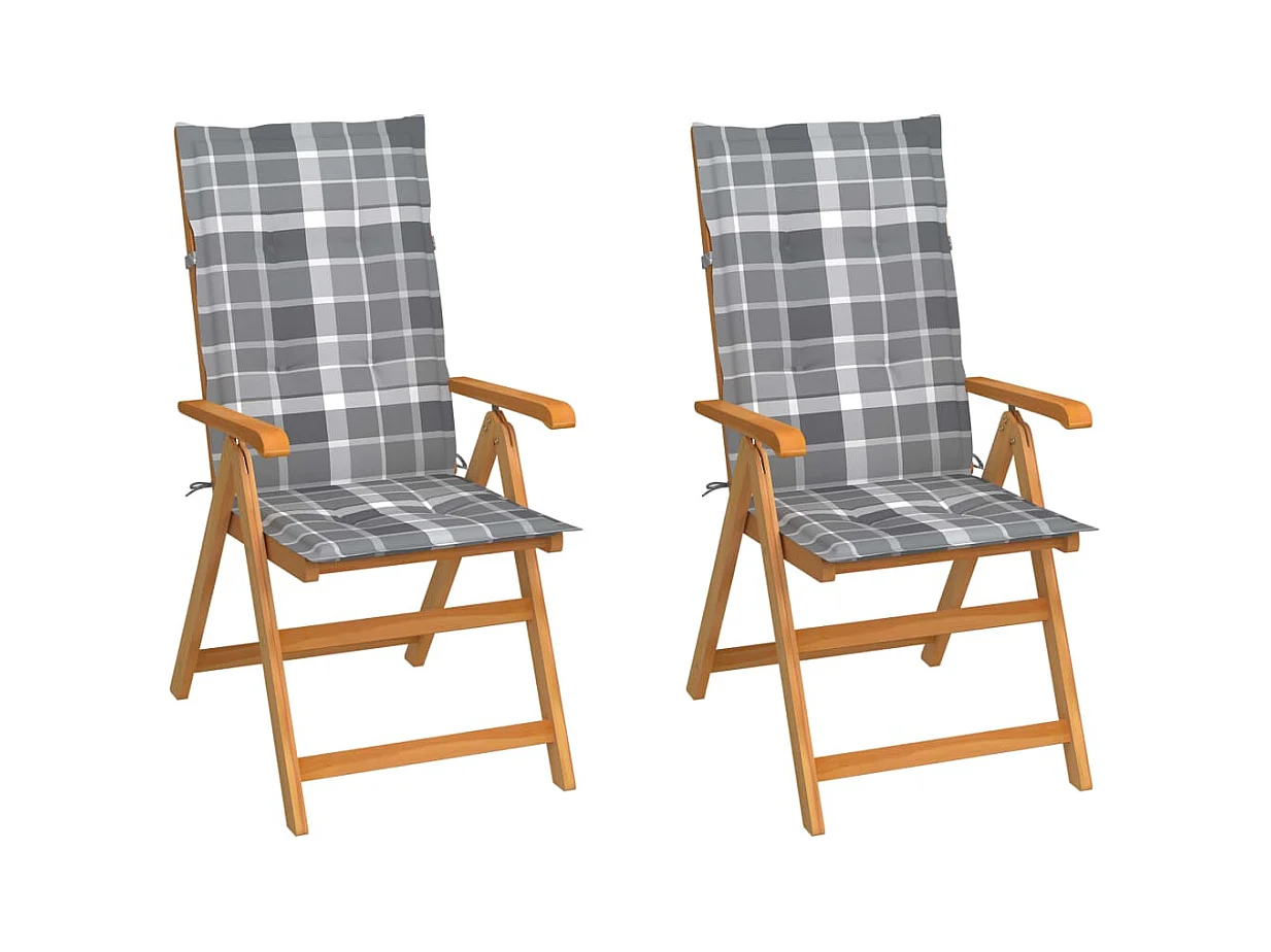 Sillas de jardín 2 uds con cojines cuadros gris madera de teca ES45984