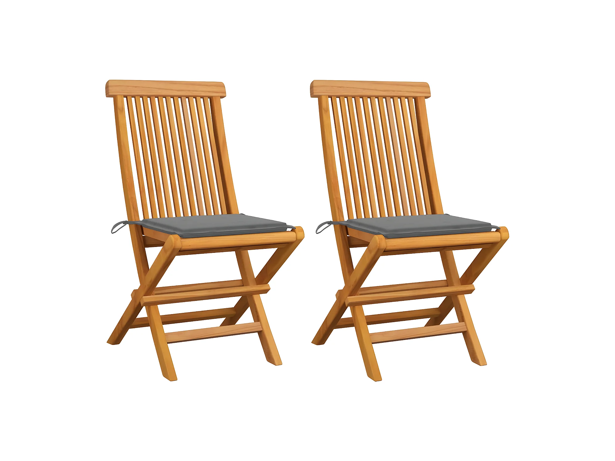 Sillas de jardín 2 uds madera maciza de teca con cojines grises ES45186