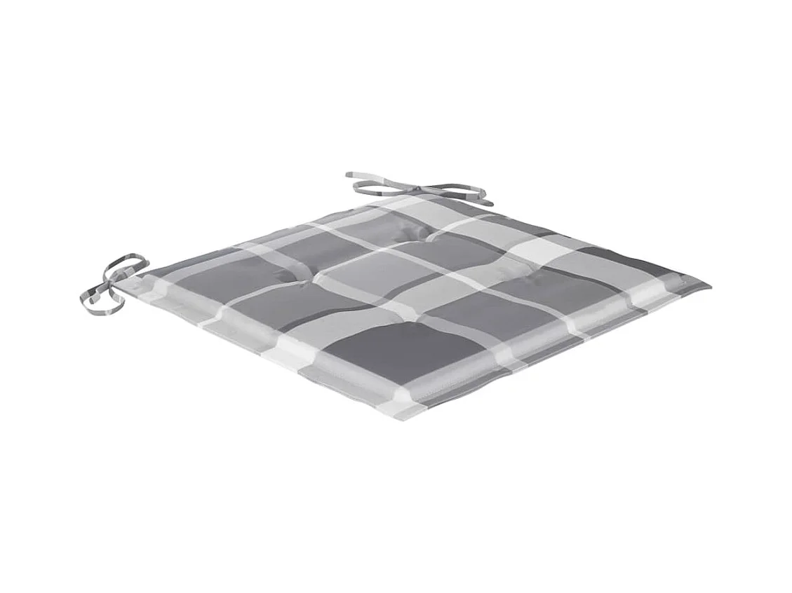 Sillas de jardín 2 uds madera teca con cojines a cuadros gris