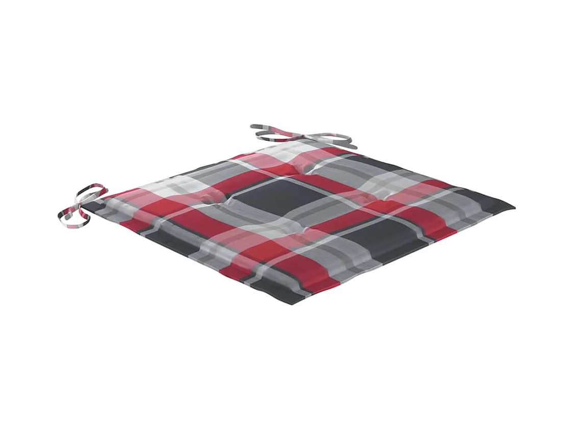 Sillas de jardín 2 uds madera teca con cojines a cuadros rojos