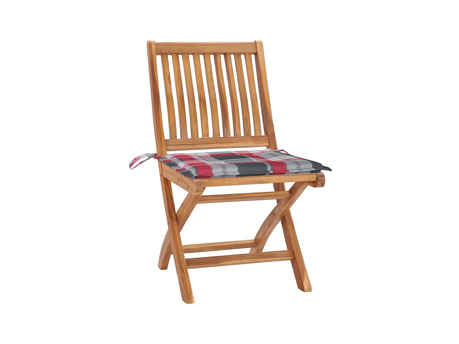 Sillas de jardín 2 uds madera teca con cojines a cuadros rojos ES92520