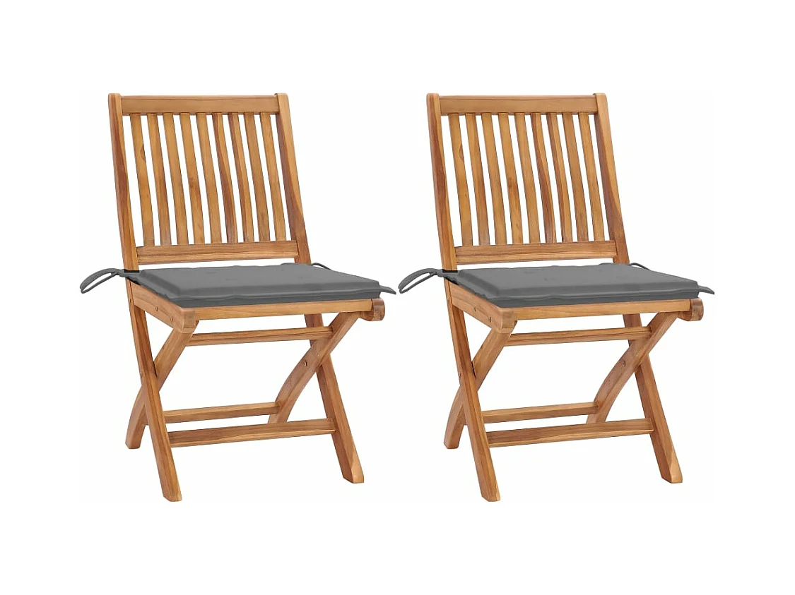 Sillas de jardín 2 unidades con cojines gris madera de teca