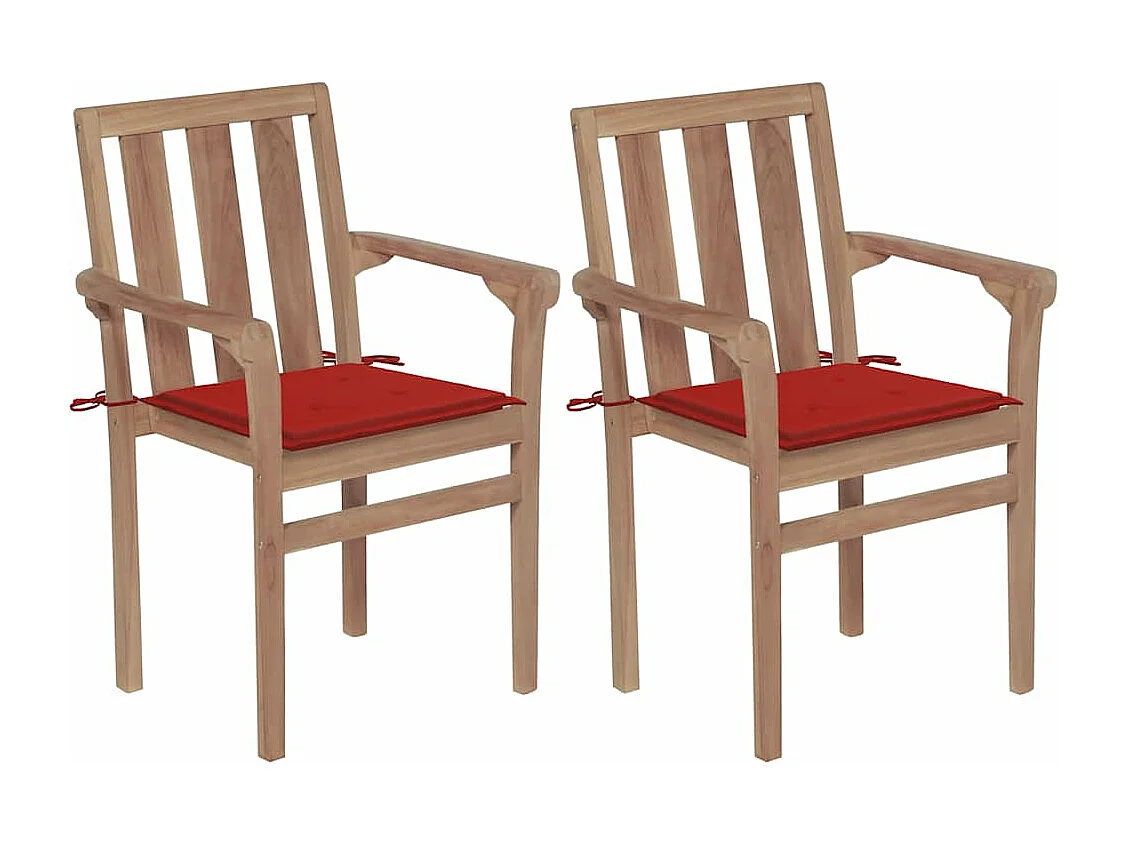 Sillas de jardín 2 unidades con cojines rojo madera de teca