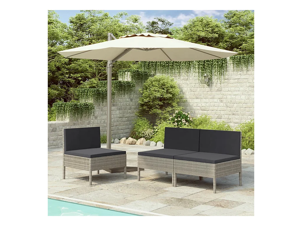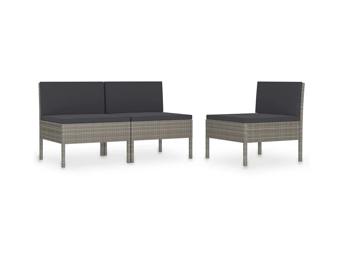Sillas de jardín 3 unidades con cojines ratán sintético gris ES85368