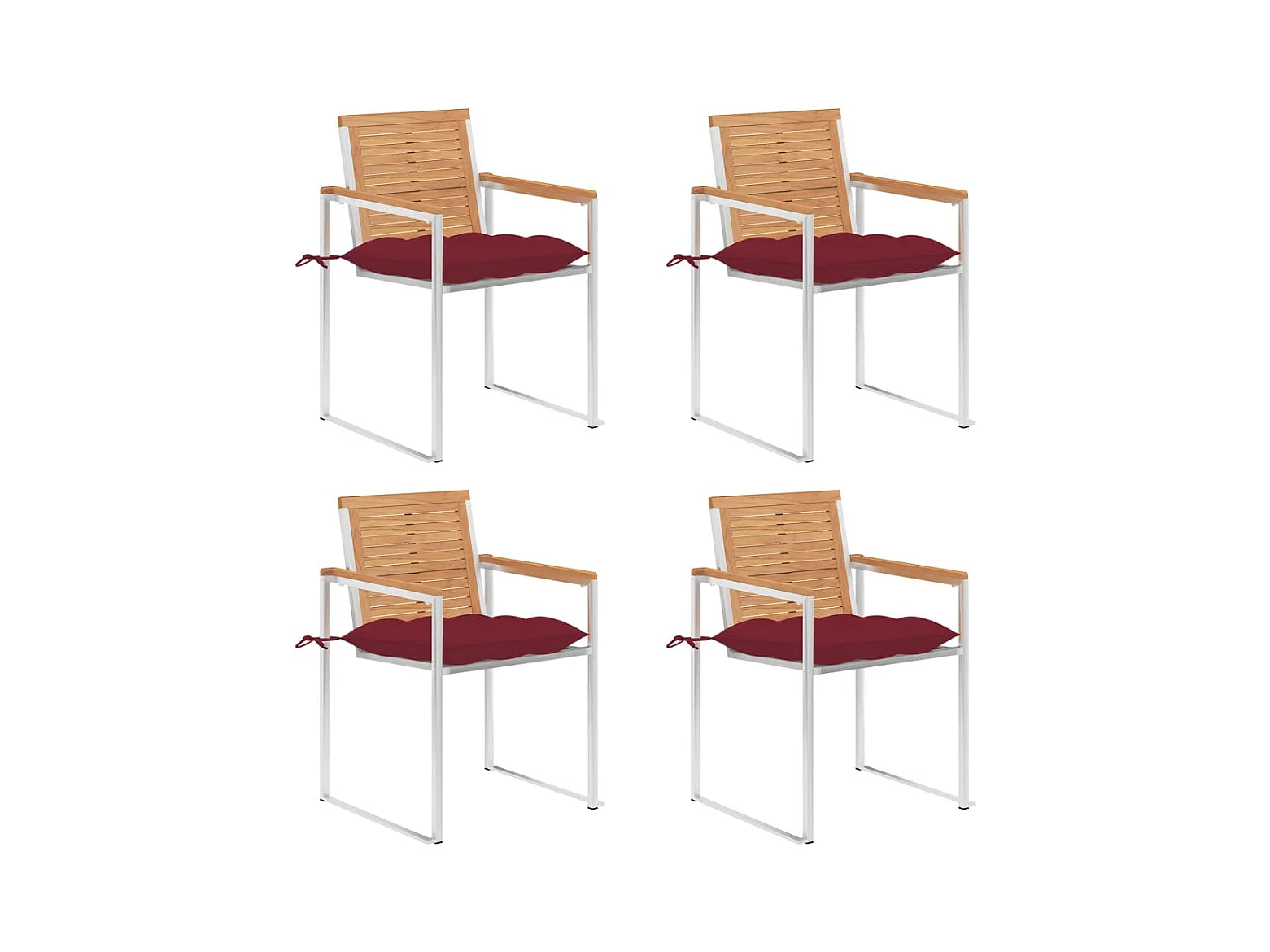 Sillas de jardín 4 unidades madera teca con cojines rojo tinto
