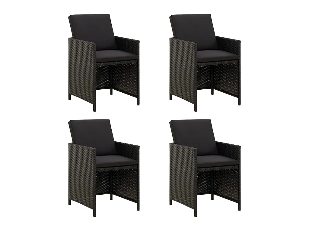 Sillas jardín y cojines 4 uds ratán sintético negro 56x59x84 cm ES65455