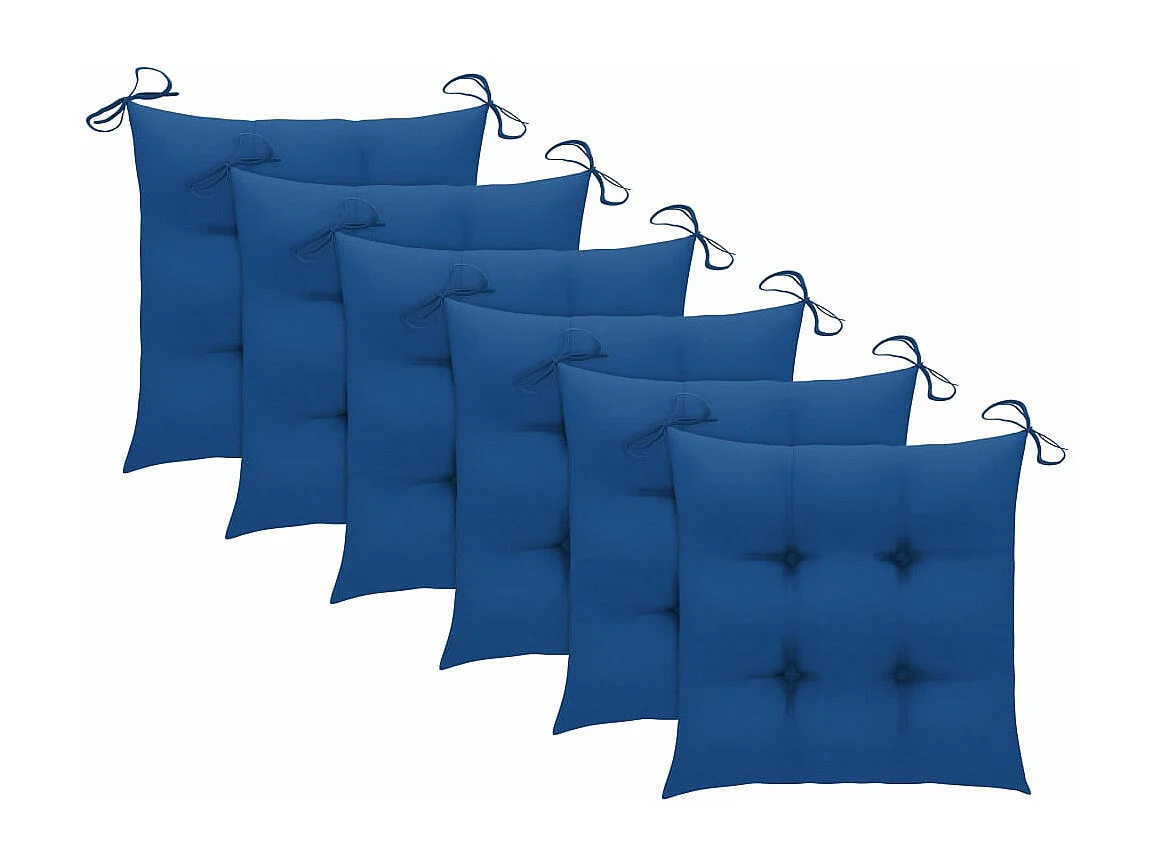 Sillas de jardín 6 unidades madera maciza de teca con cojines azules