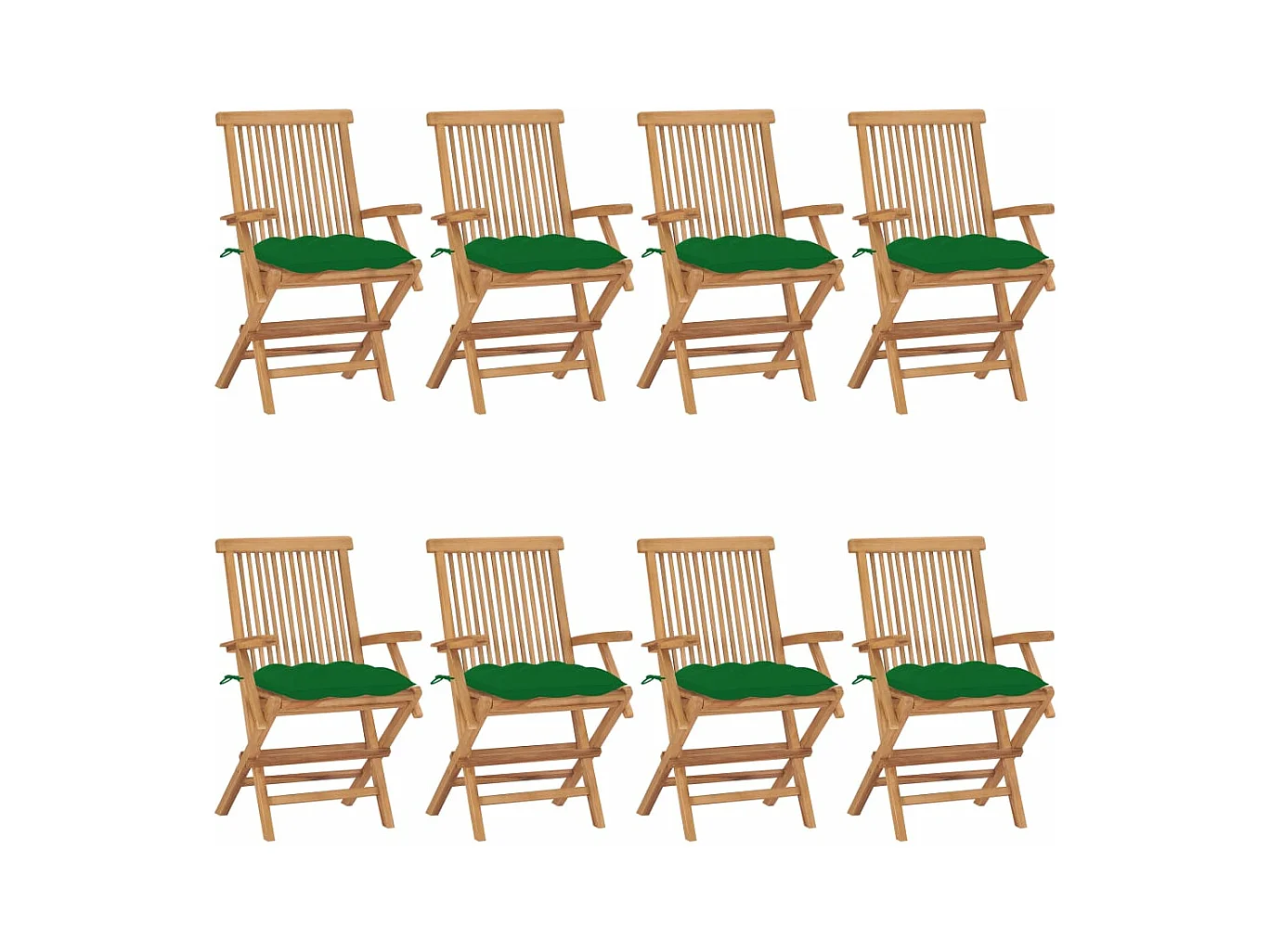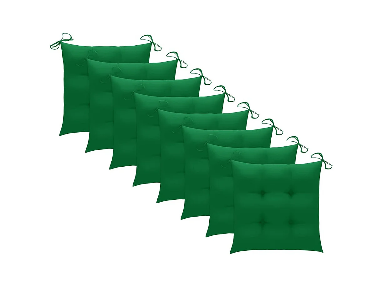 Juego de 8 sillas de jardín con cojines de color verde brillante de teca maciza
