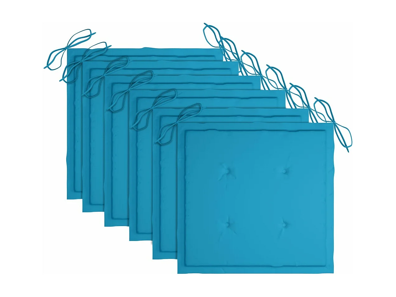 Sillas de jardín 6 unidades madera maciza de teca con cojines azules