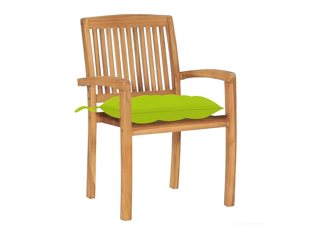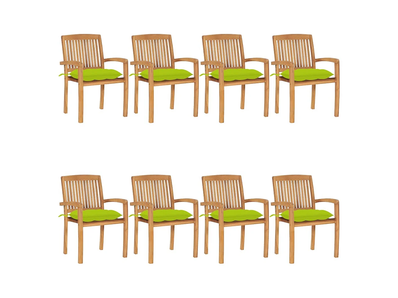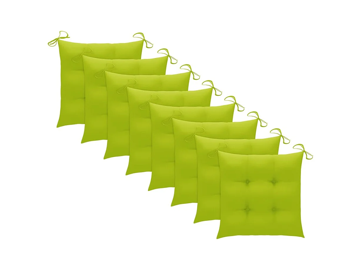 Juego de 8 sillas de jardín con cojines de color verde brillante de teca maciza