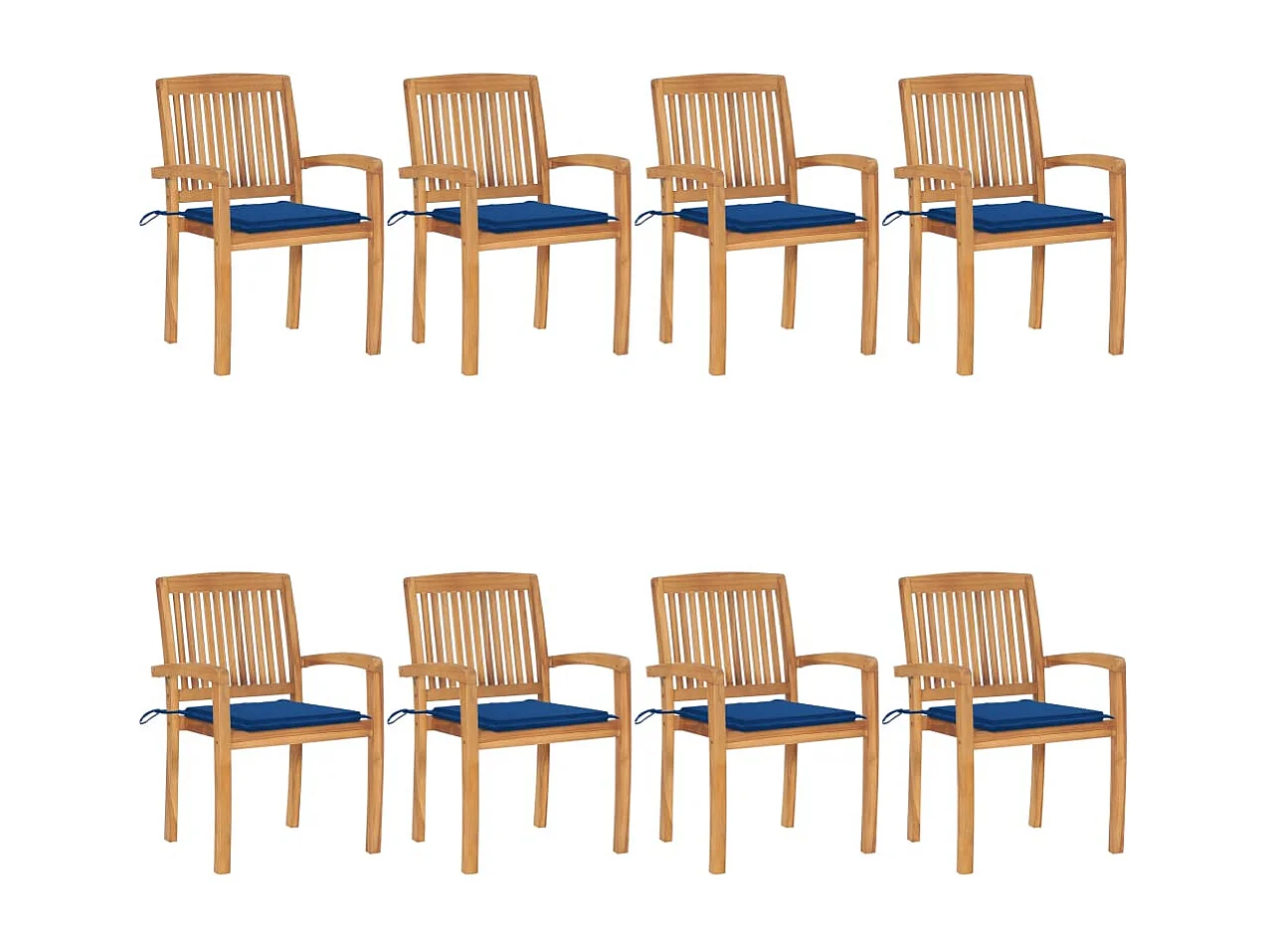 Sillas de jardín apilables con cojines 8 piezas Teca maciza