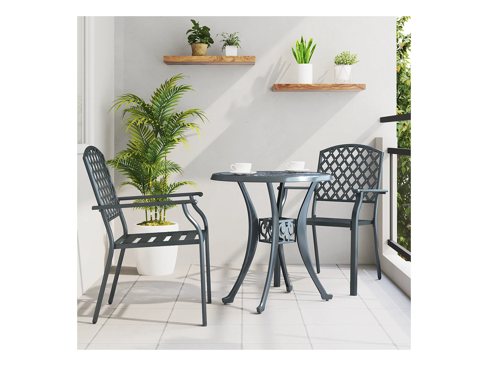 Sillas de jardín apilables de 2 piezas en acero antracita