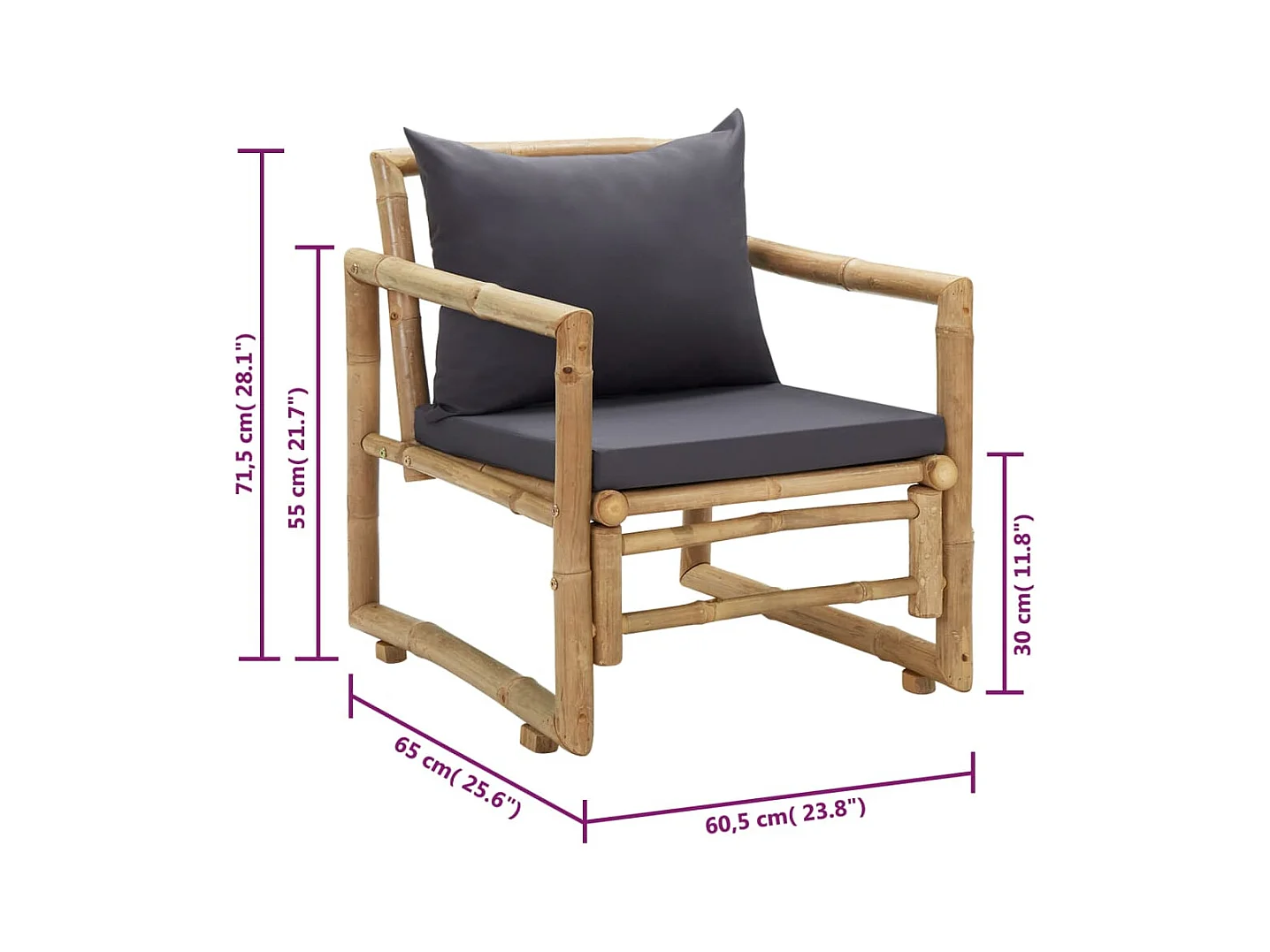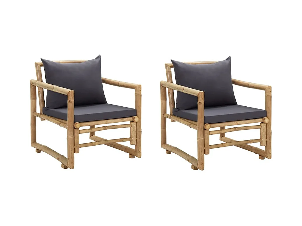 Sillas de jardín con cojines 2 unidades bambú