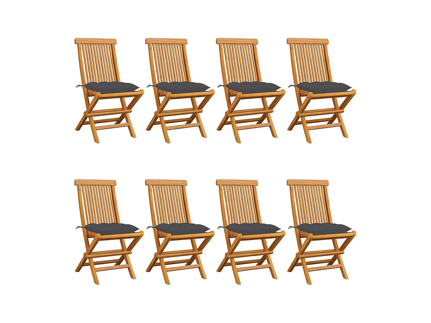 Sillas de jardín con cojines antracita juego de 8 de teca maciza