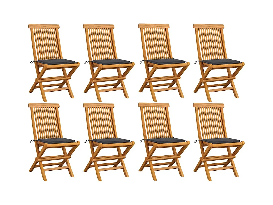 Sillas de jardín con cojines antracita juego de 8 de teca maciza