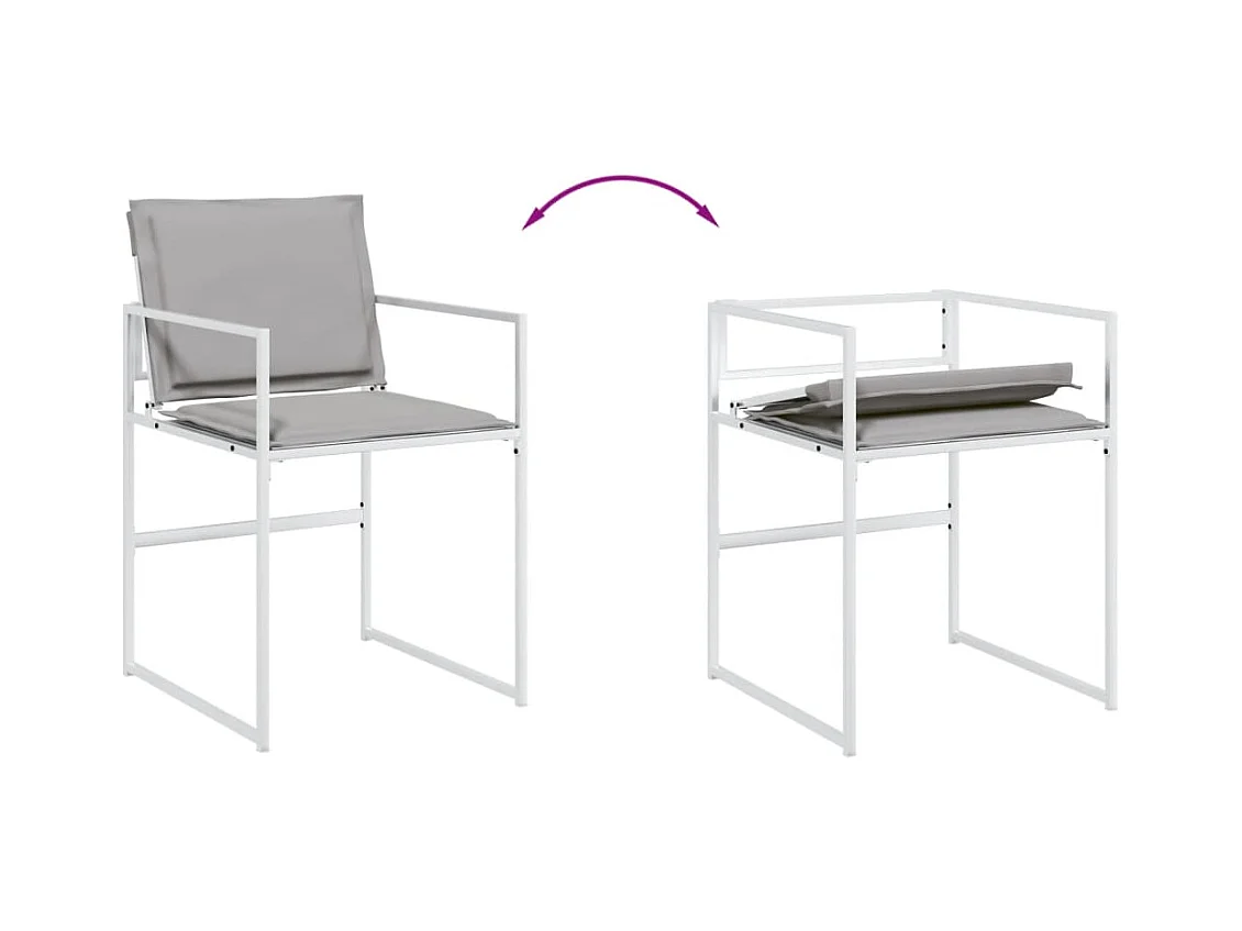 Sillas de jardín con cojines, juego de 4, acero blanco/textileno