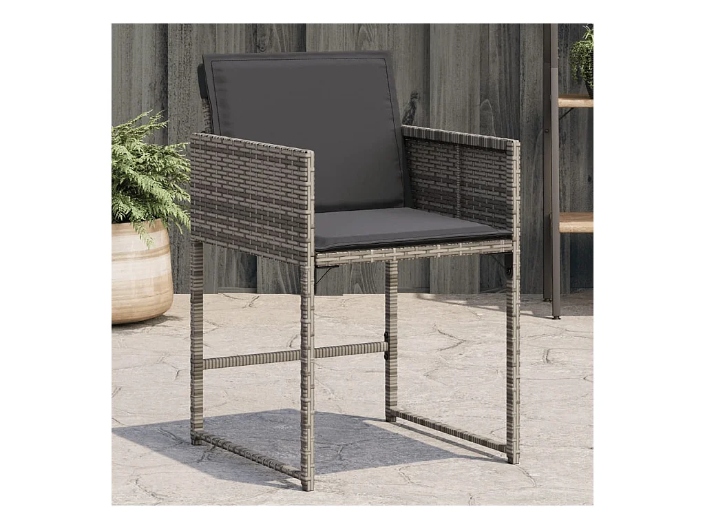 Sillas de jardín con cojines, juego de 4, gris, resina tejida