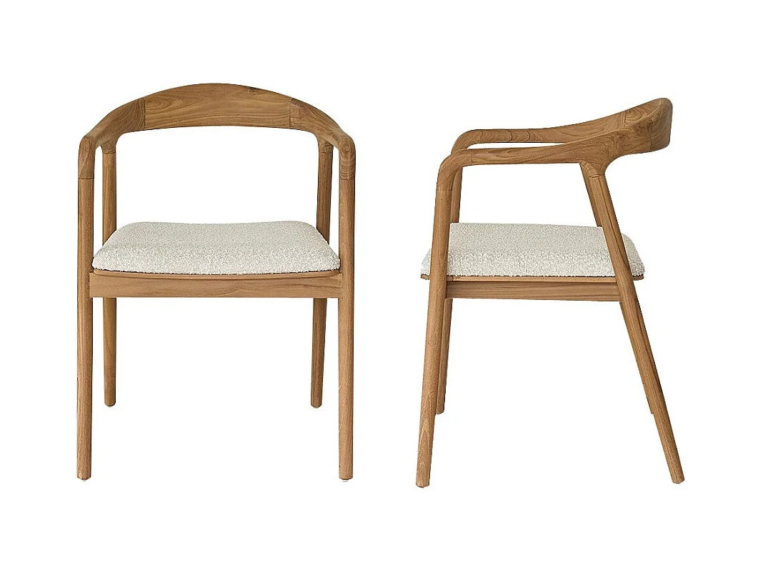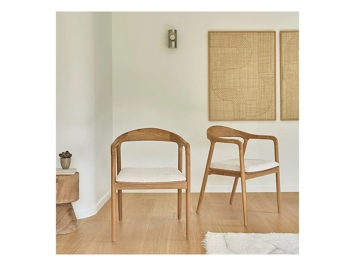 Sillas de jardín de madera de teca maciza y tela rizada (juego de 2)