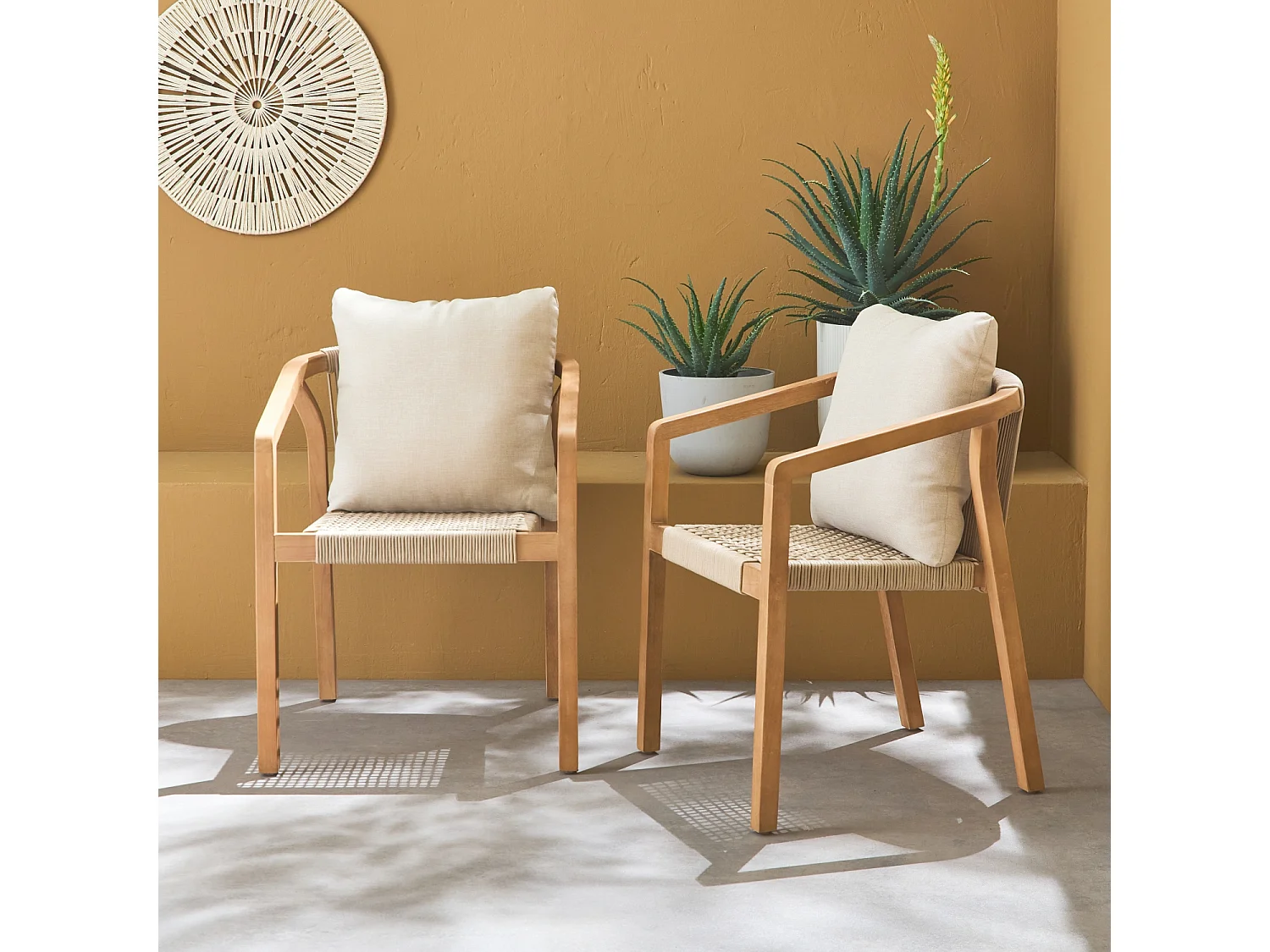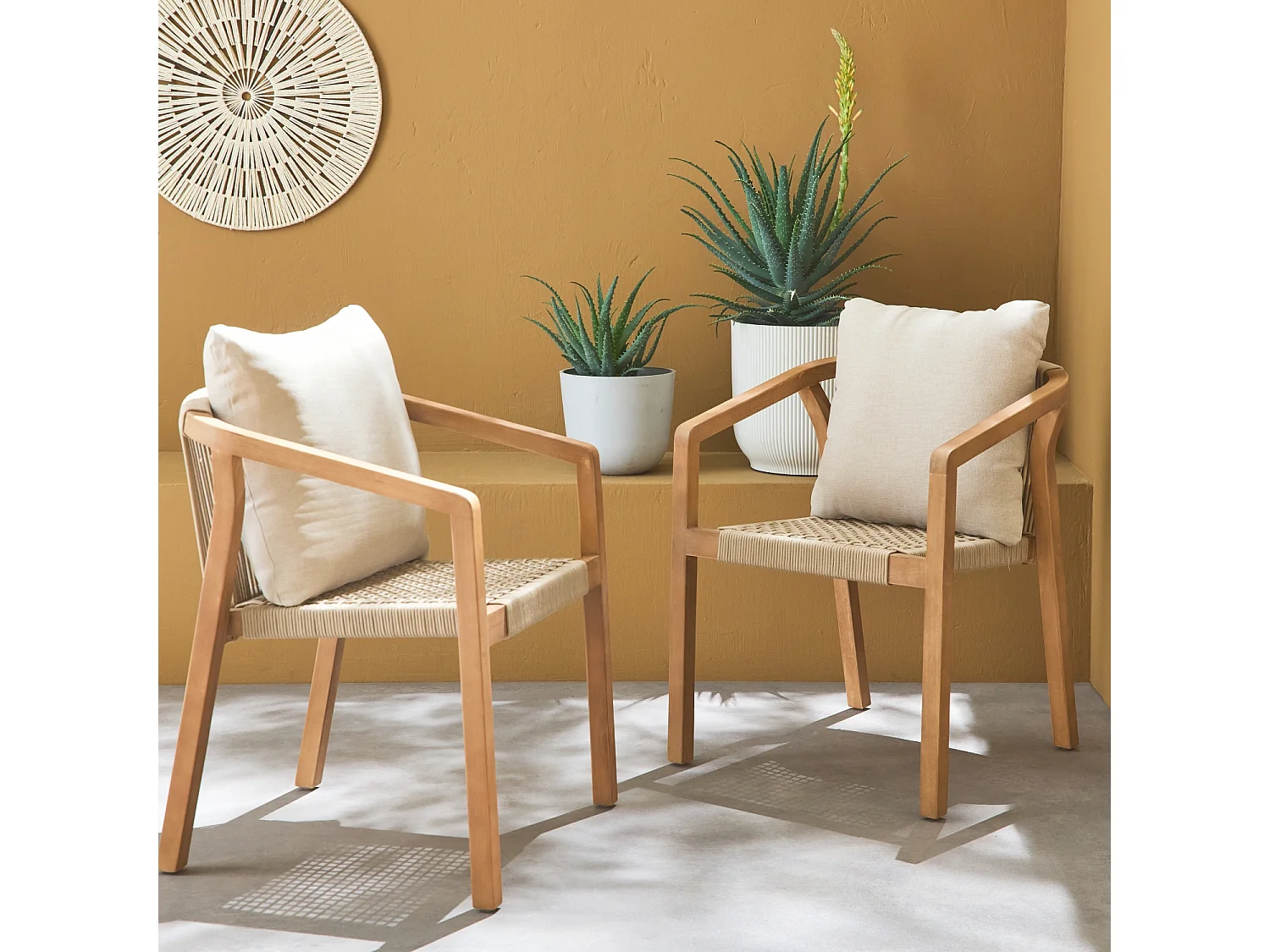 Sillas de jardín de madera y cuerda, set de 2