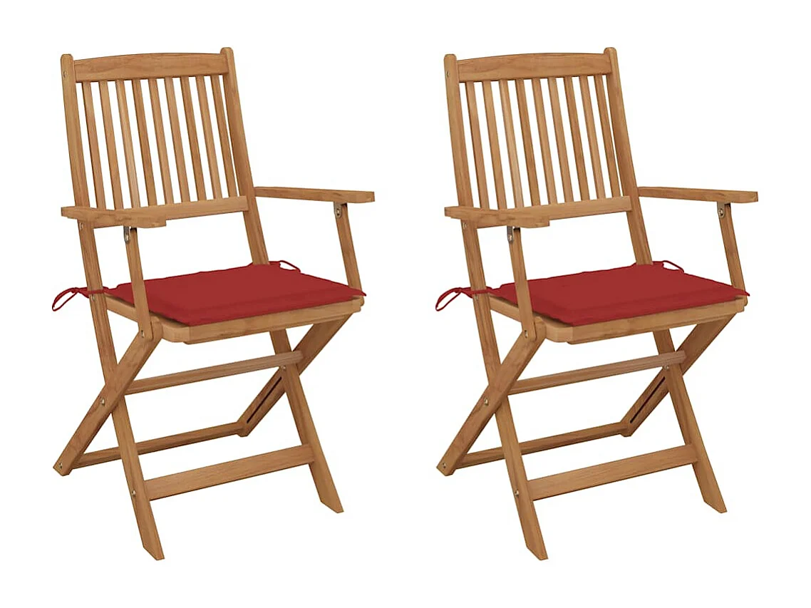 Sillas de jardín plegables 2 unidades y cojines madera maciza acacia